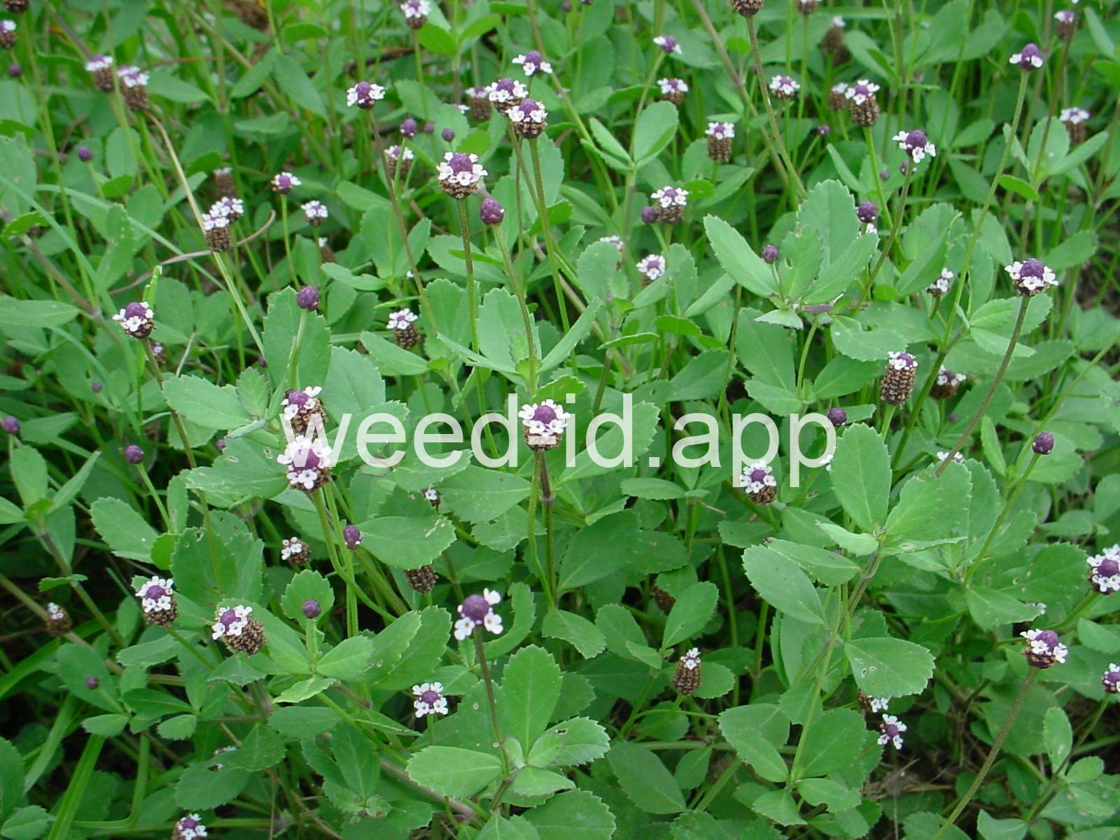 Common Names: frog fruit, sawtooth fogfruit, turkey tangle frogfruit = lippia nodiflora