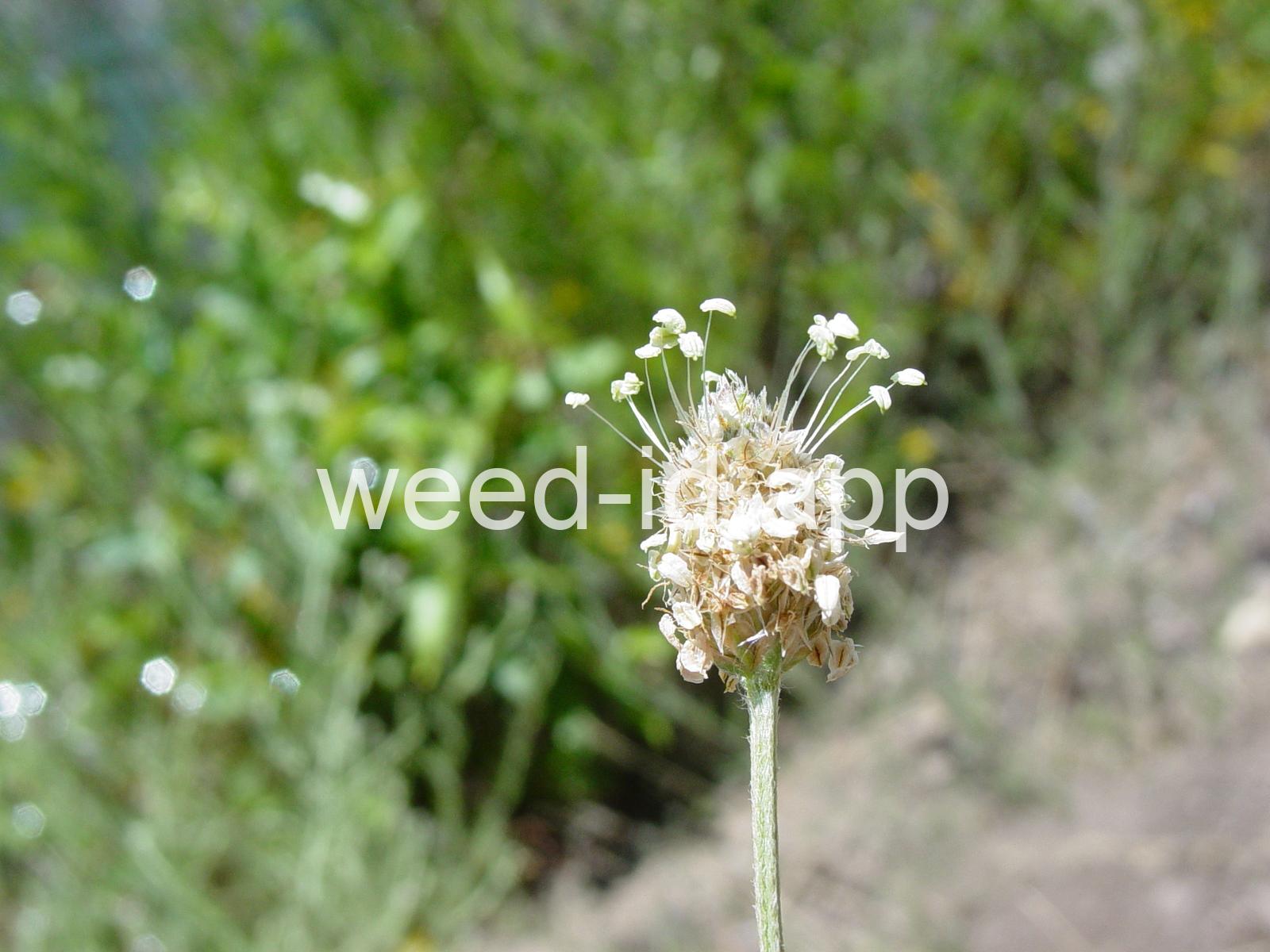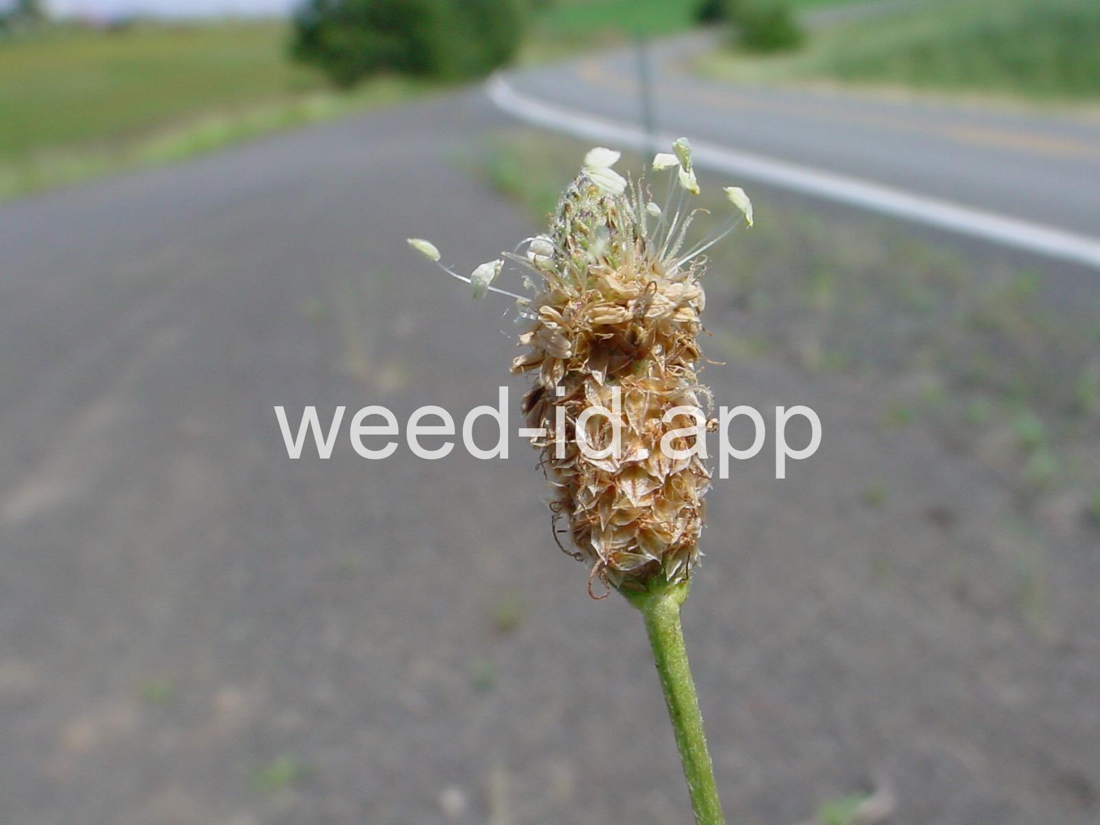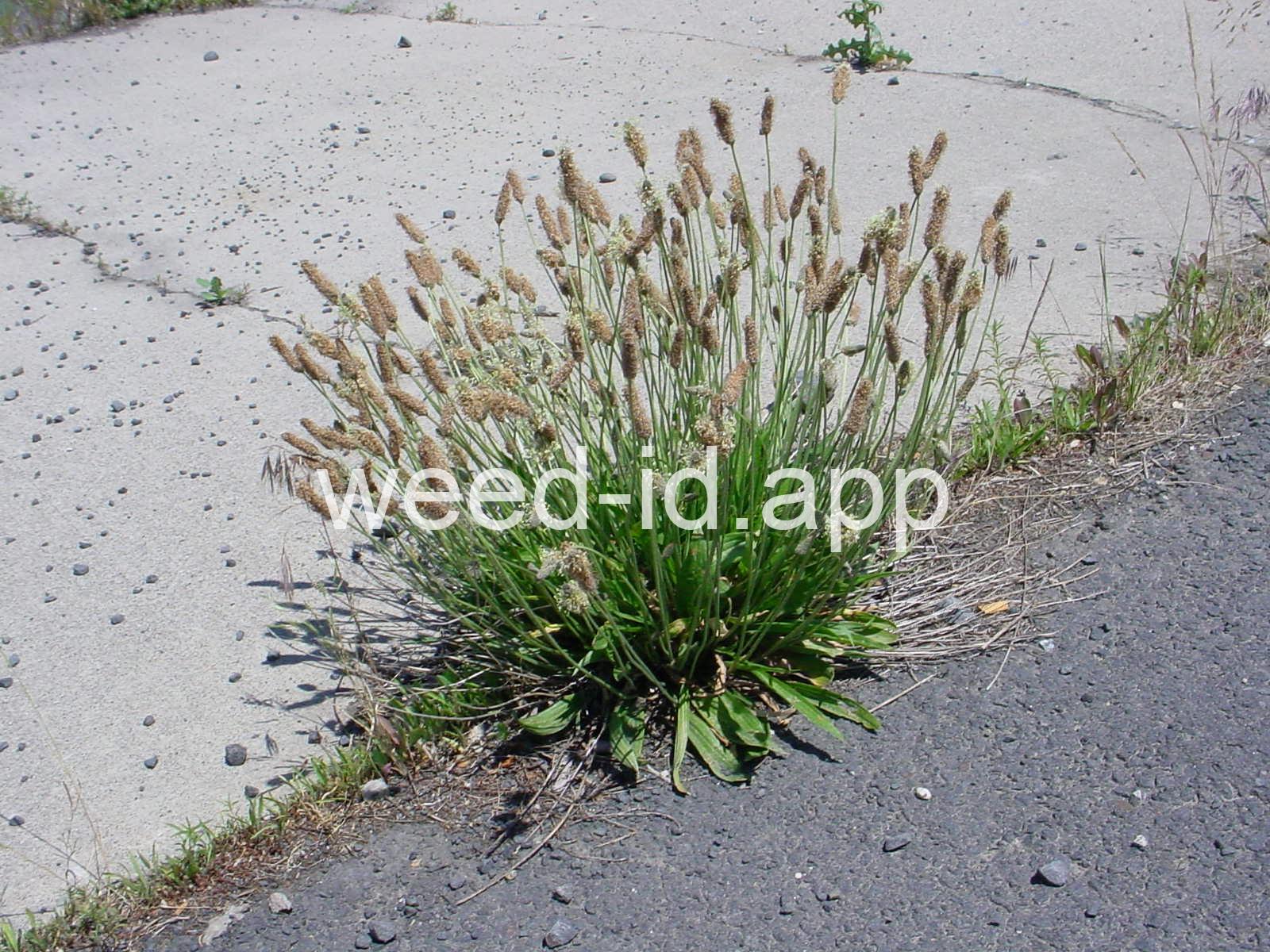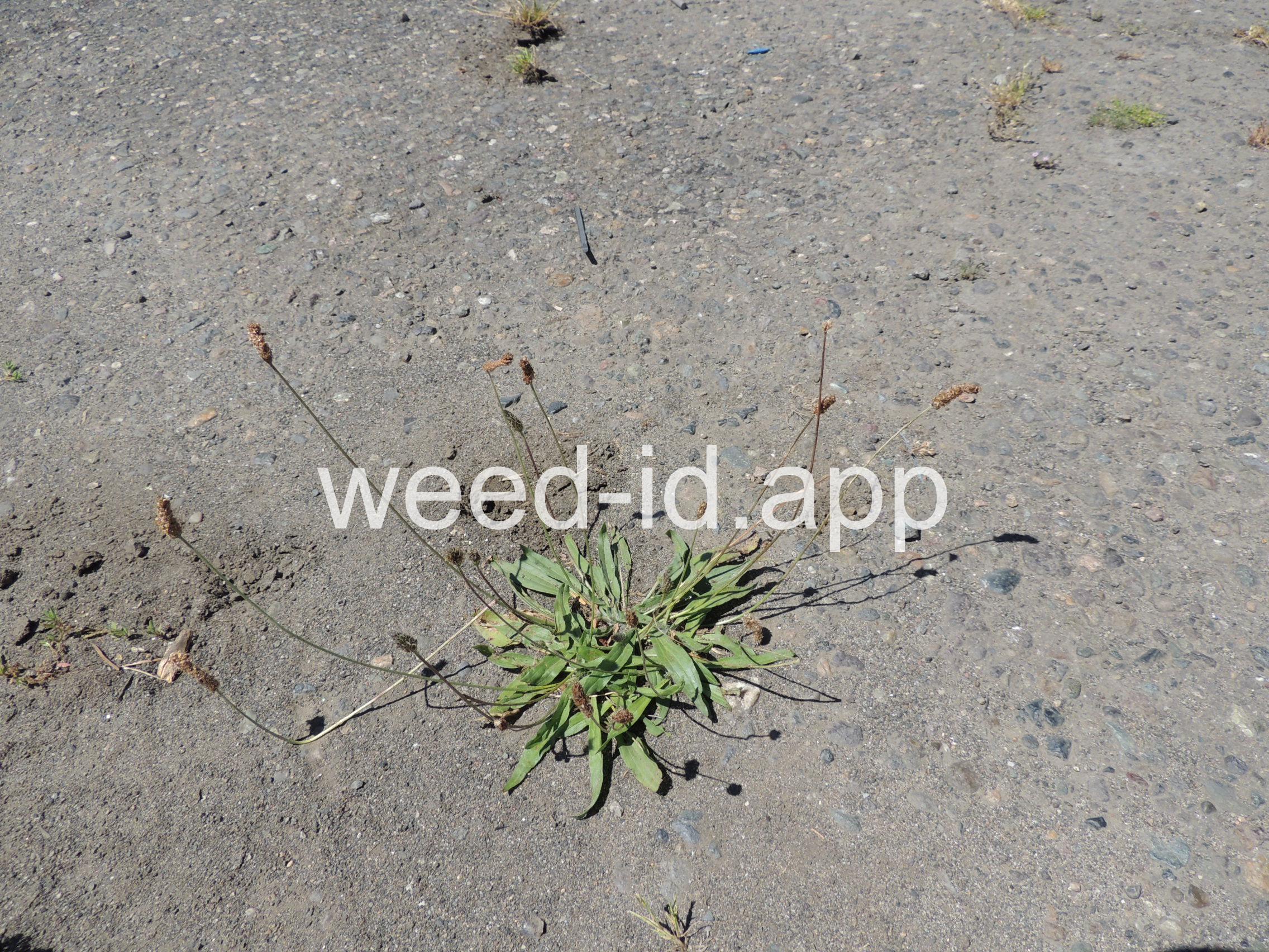 These fibrous rooted perennials have a long, leafless, flowering stem with a short spike of flowers at the tip. The main veins of the leaves are almost parallel and, as inferred by the scientific name, the leaves are lanceolate. This species is a common weed of lawns and pastures.