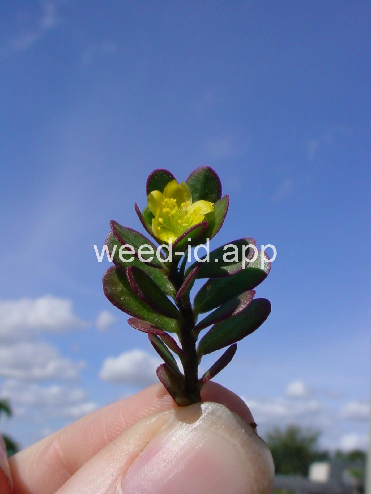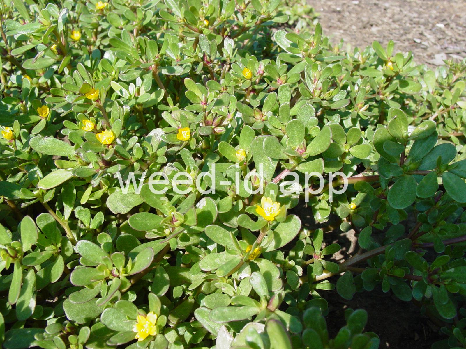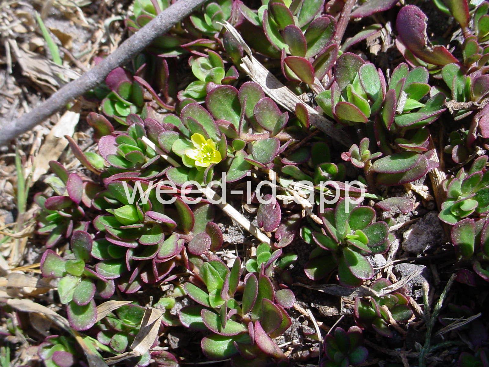 A prostrate annual with fleshy, often brownish-colored leaves. The leaves are edible, however some people find their somewhat mucilaginous texture disagreeable. The small, yellow flowers form a capsule-type fruit which produces a large amount of tiny, black seeds. A very common weed of flower and vegetable gardens.