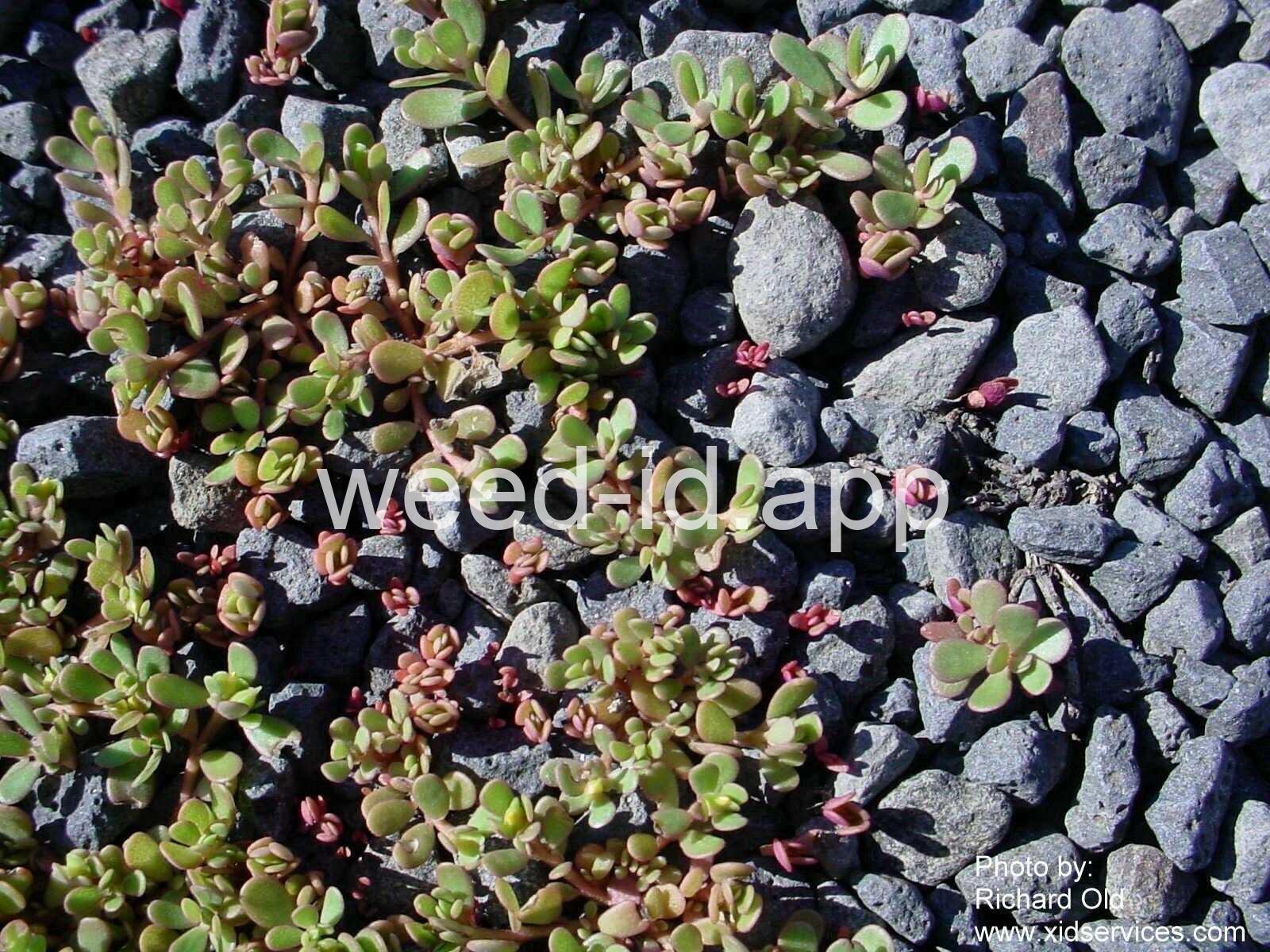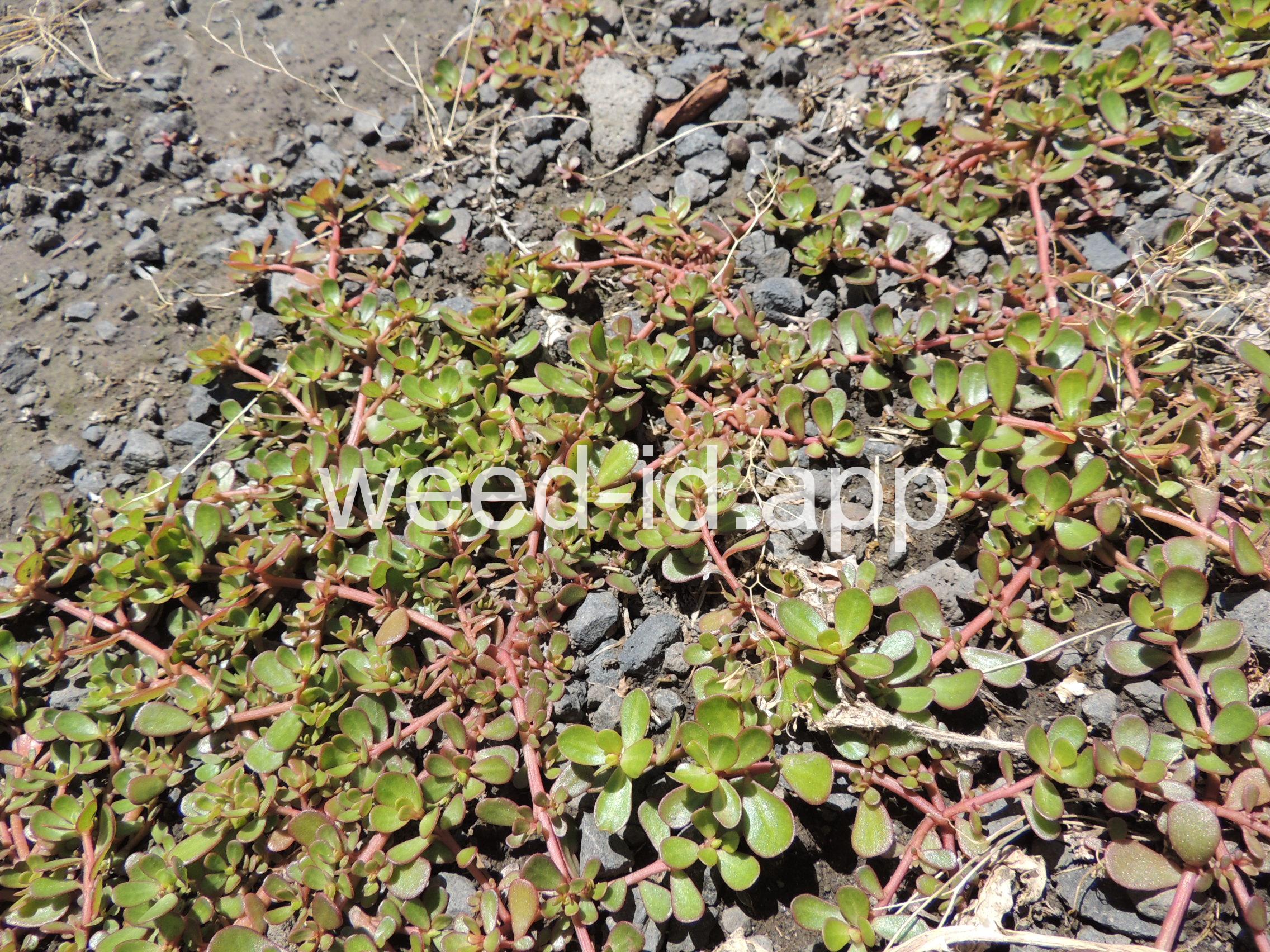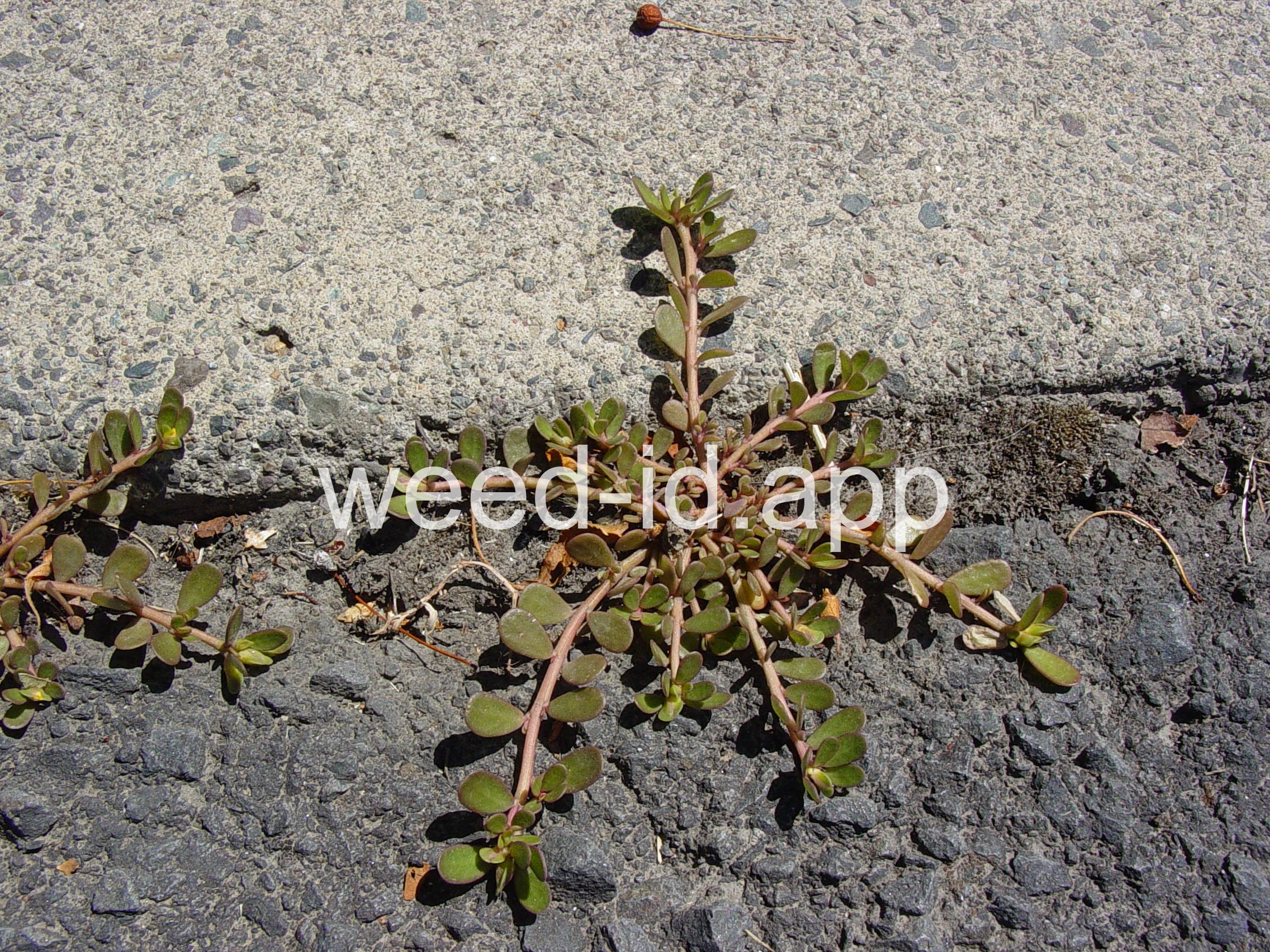 A prostrate annual with fleshy, often brownish-colored leaves. The leaves are edible, however some people find their somewhat mucilaginous texture disagreeable. The small, yellow flowers form a capsule-type fruit which produces a large amount of tiny, black seeds. A very common weed of flower and vegetable gardens.