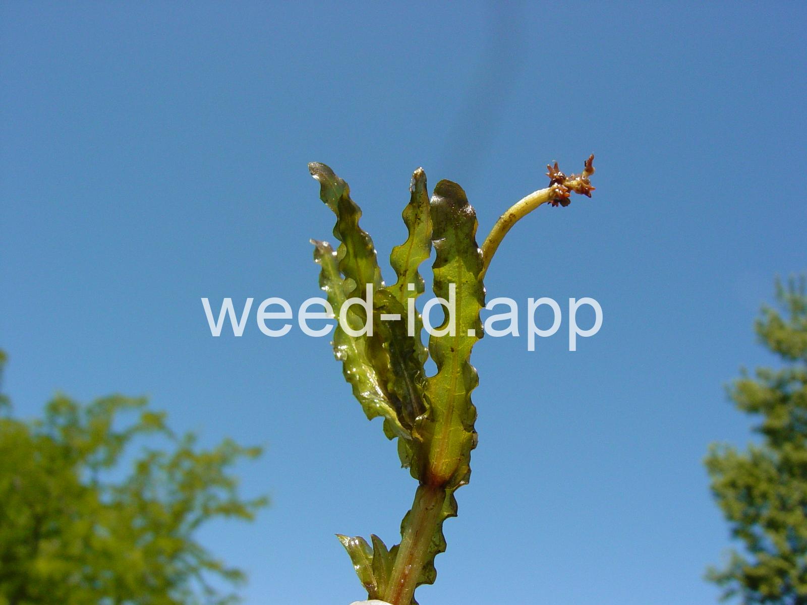 One of the most common aquatic weeds of lakes and ponds in North America. The specific epithet `crispus` means `curled,` hence both the common and scientific names refer to the most noticeable feature of this species, i.e., the wavy margins of the leaves.