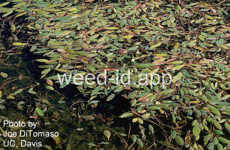 The stipules sheathing the stem, 3 - 9 cm long. The submerged leaves narrowly linear while the floating leaves are oval to elliptic.