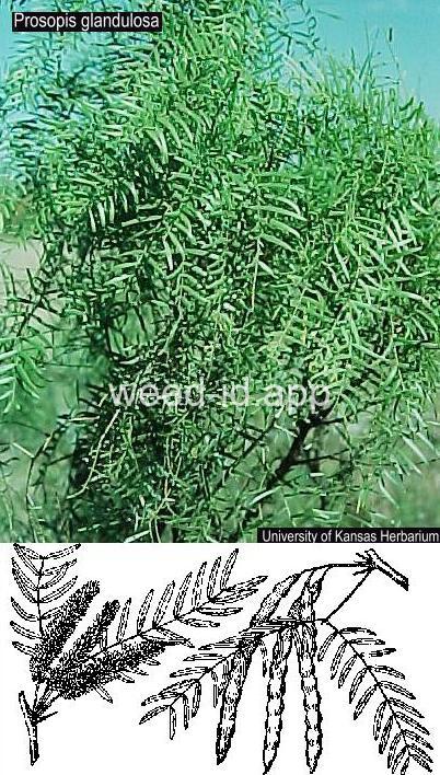 This shrub is native to the deserts of the southwest. It has hairless, bipinnately compound leaves, yellow flowers, and strong spines in the leaf axils. It is recently famous for its use as barbecue charcoal. The two varieties are distinguished as follows: Var. glandulosa - Leaflets 6 - 15 pairs, 25 - 62 mm long, 8 - 15 times as long as broad. Var. torreyana - Leaflets 8 - 20 pairs, 10 - 30 mm long, 5 - 8 times as long as broad.