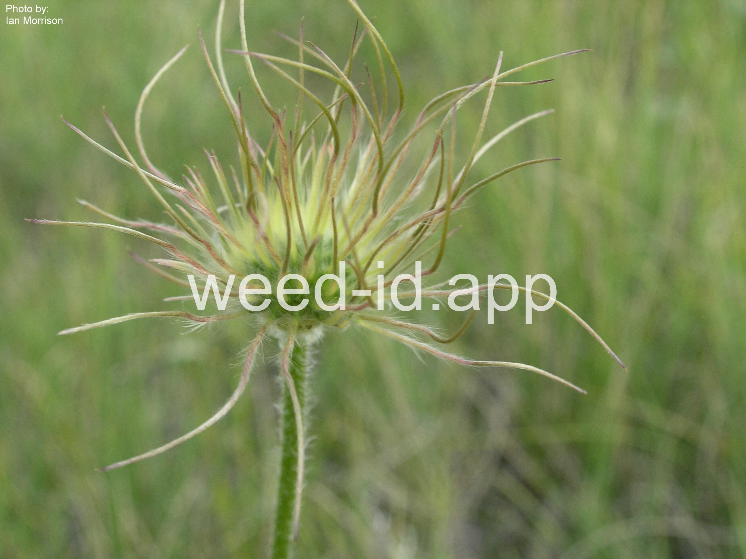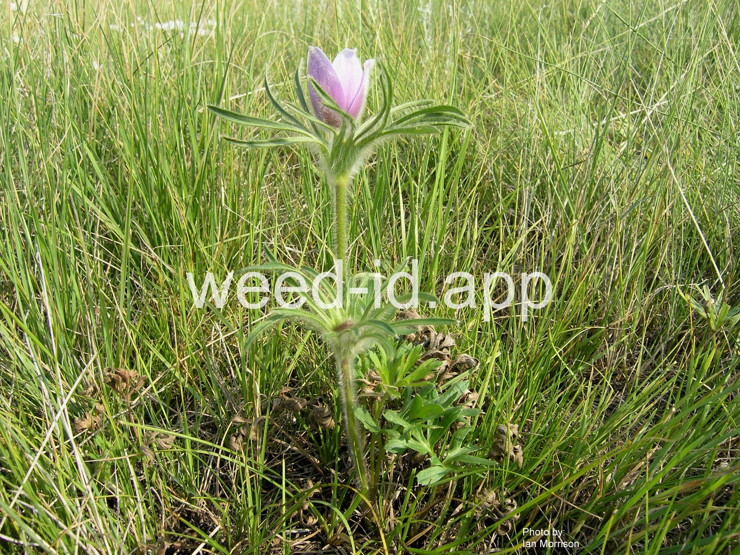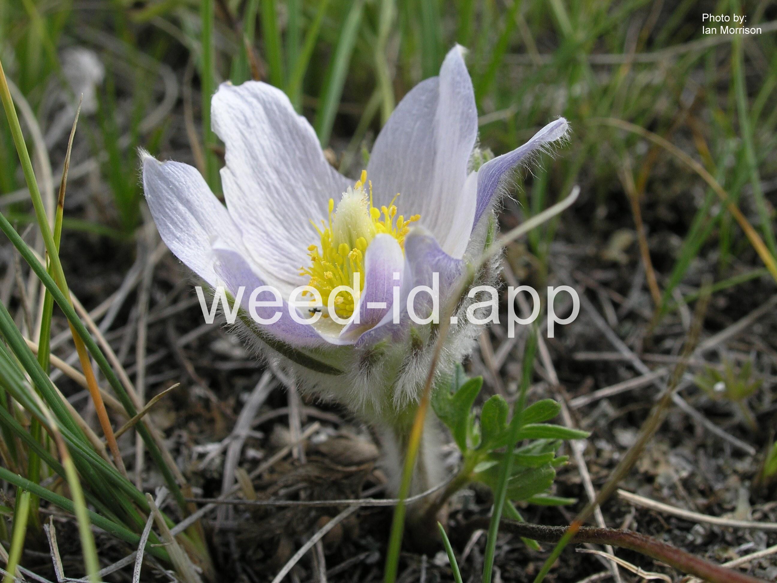 This native wildflower is the state flower of South Dakota. There is no explanation for its inclusion in the book South Dakota Weeds (1967). The plant is one of the first species to bloom in the spring in dry rangeland. Each flower has five to eight bluish-purple sepals and no petals. It is easily distinguished from other species of the genus in the Great Plains by its plumose styles.