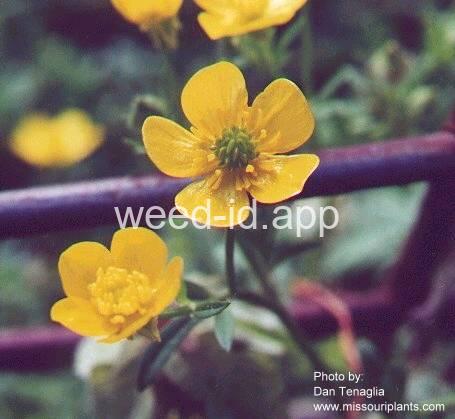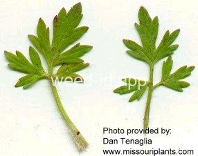 A short annual, the lower leaves simple and rounded; the upper divided into linear palmate lobes. The leaves and stem very hairy. The achenes flattened, smooth except for a short hooked beak at the tip.