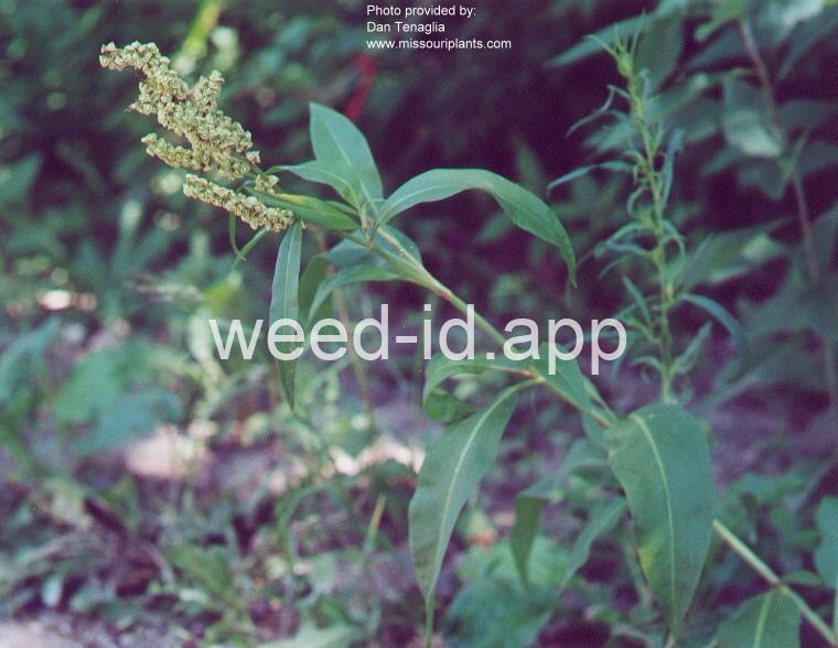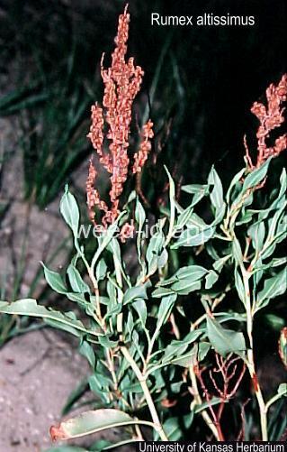 A very typical looking dock which can be distinguished from Rumex crispus by its flat leaves but is separated from Rumex salicifolius and Rumex mexicanus by technical characteristics of the fruit.