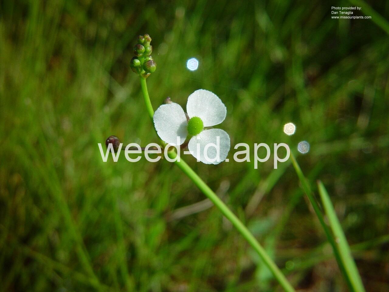 While the common name of `arrowhead` is appropriate for most members of the genus, the leaves of this species are linear-lanceolate. The flower clusters are usually shorter than the leaves.