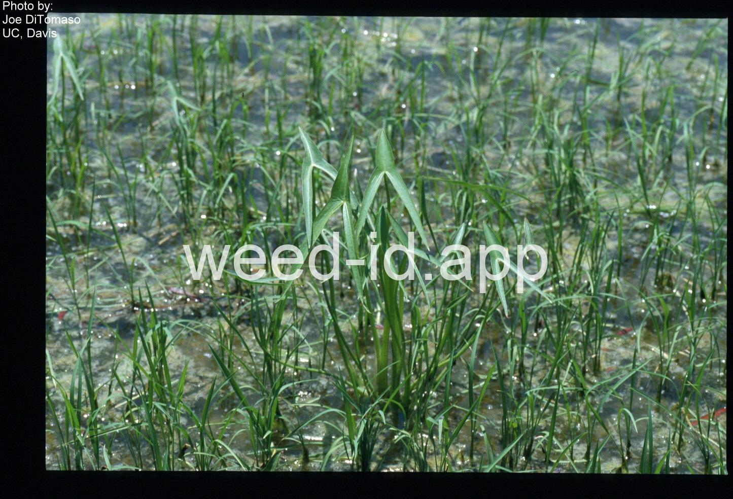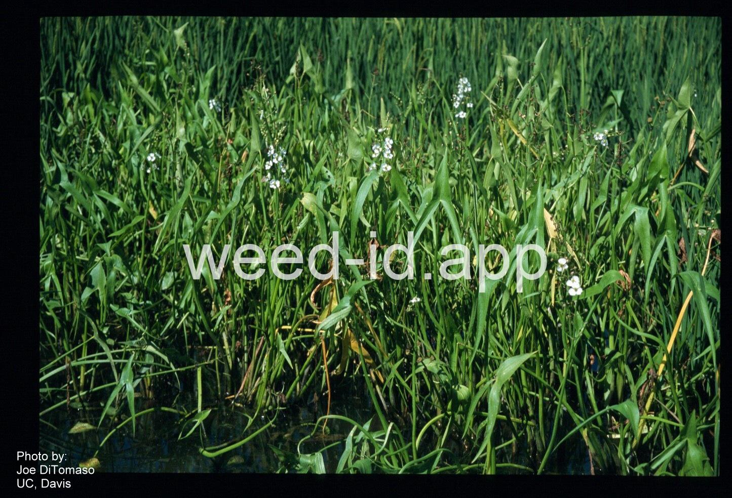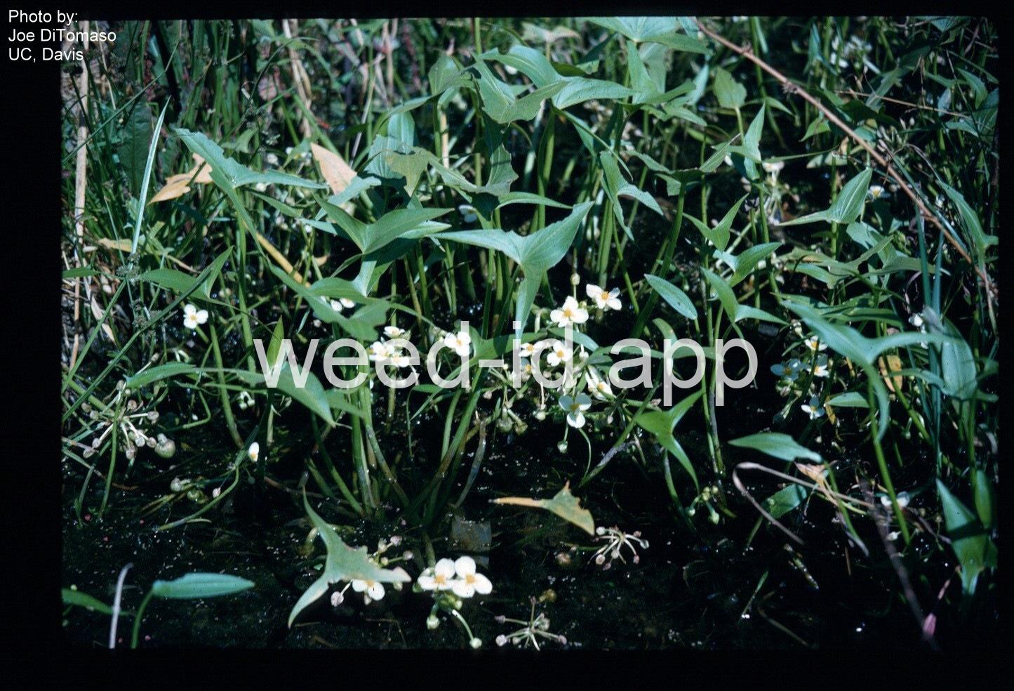 Very similar to California arrowhead but perennial and with the basal lobes of the arrowhead-shaped leaves longer than the terminal lobe.