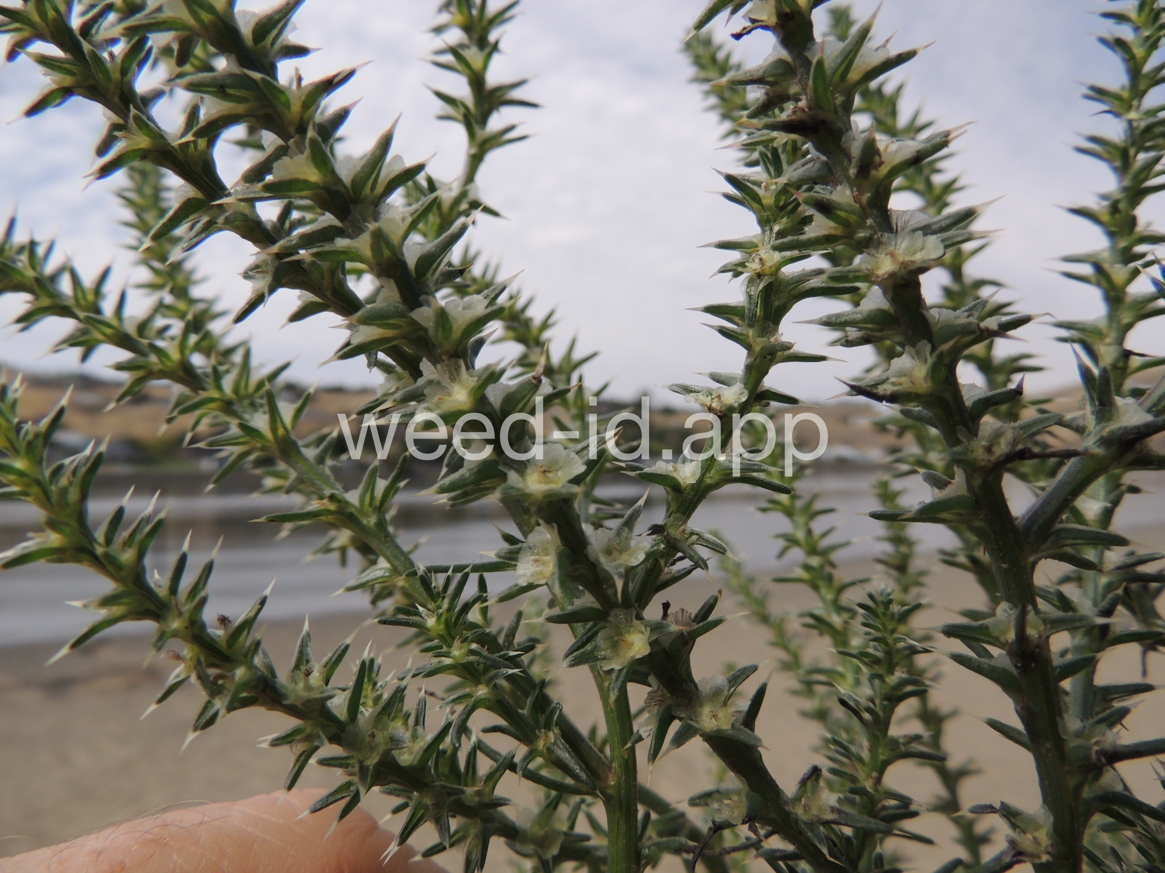 This is the classic `tumbleweed` of ghost towns in the western movies. Probably imported as a silage plant for arid regions, the young growth is succulent and edible to man or livestock. At maturity the plant forms a spiny sphere, detaching at the base and tumbling in the wind spreading seeds as it goes. The seedling leaves are extremely narrow and linear; they can be mistaken for grass seedlings without close examination.