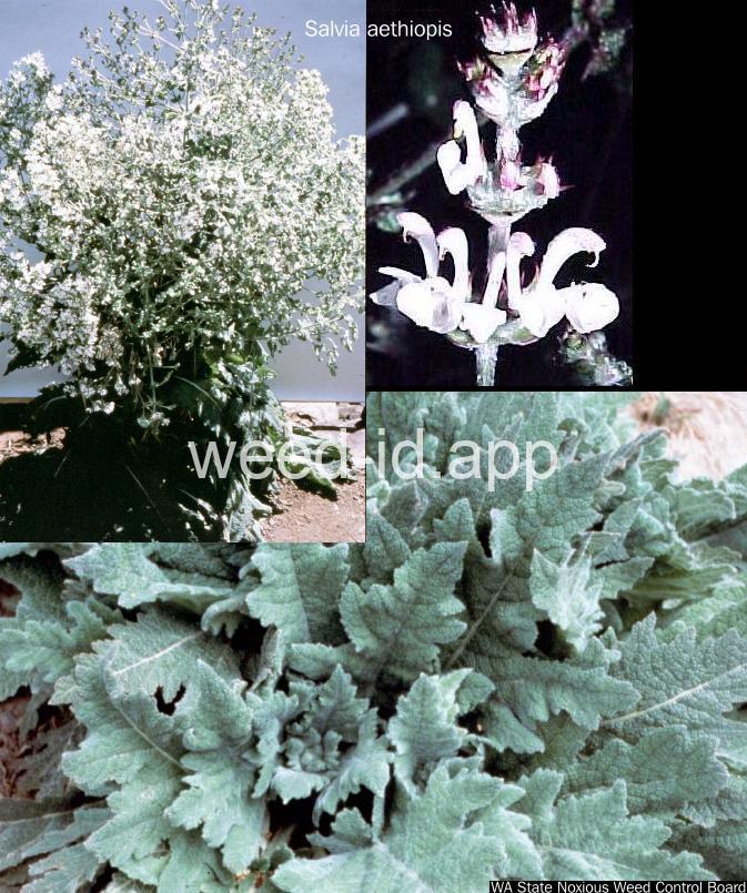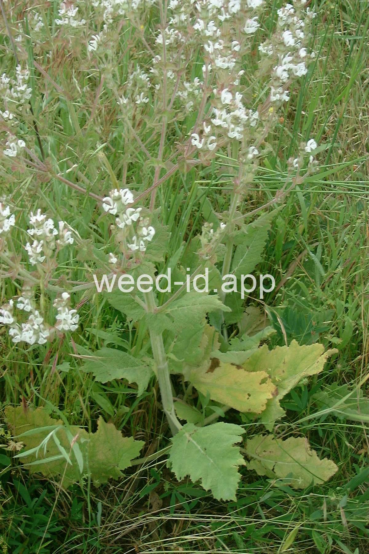 An extremely hairy biennial, the flowering stalk much branched and rounded, disseminated as a `tumbleweed.` Salvia pratensis and Salvia sclarea are similar species which are often confused with Mediterranean sage.