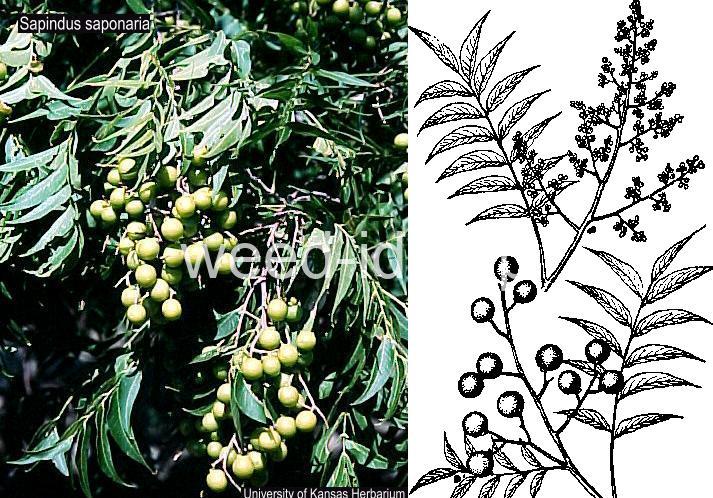 Sapindus saponaria var. drummondii = Sapindus drummondii Fruit a yellowish berry. Leaves with an even number of leaflets.