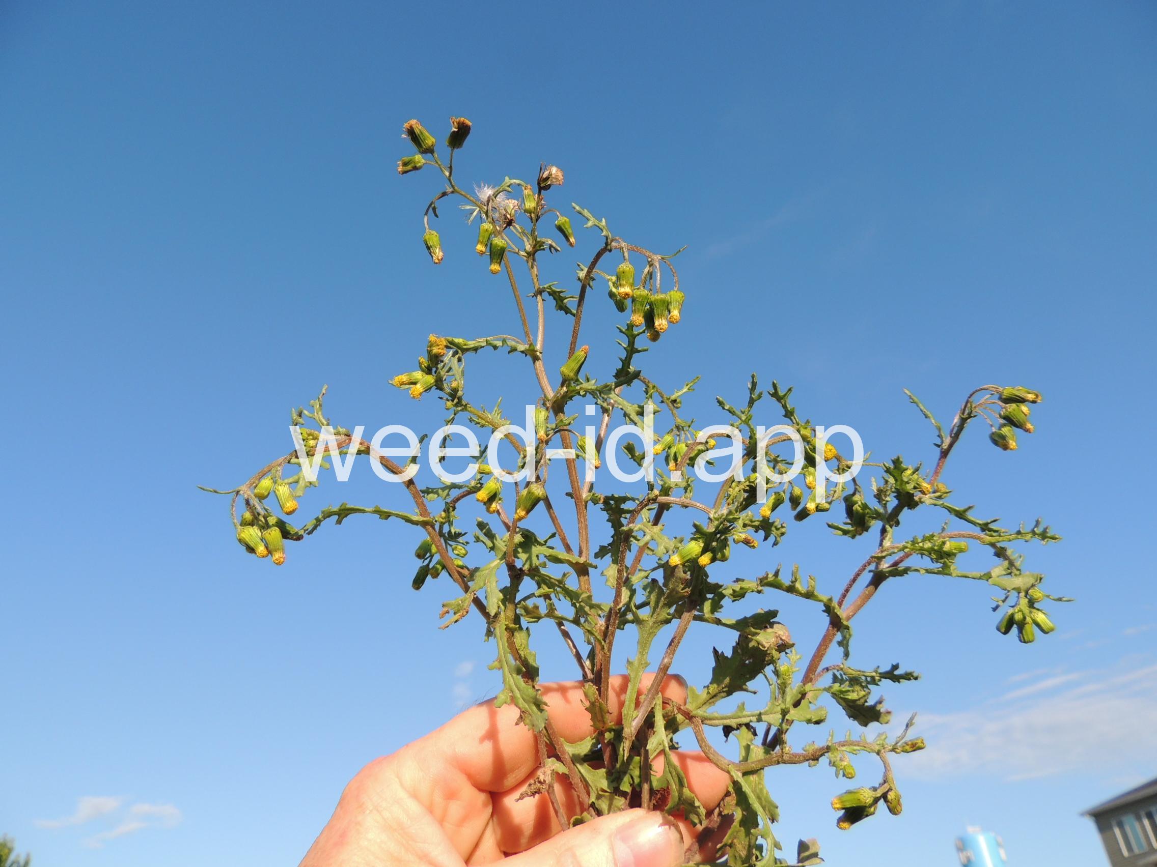 A common annual weed of disturbed sites. The leaves are pinnately lobed, and the small heads of yellow flowers are without ray flowers. The bracts immediately beneath the heads display the small, black tips which are typical of the genus. This species is more toxic to horses than tansy ragwort (Senecio jacobaea) but is seldom consumed in large quantities due to the small stature of the plants.