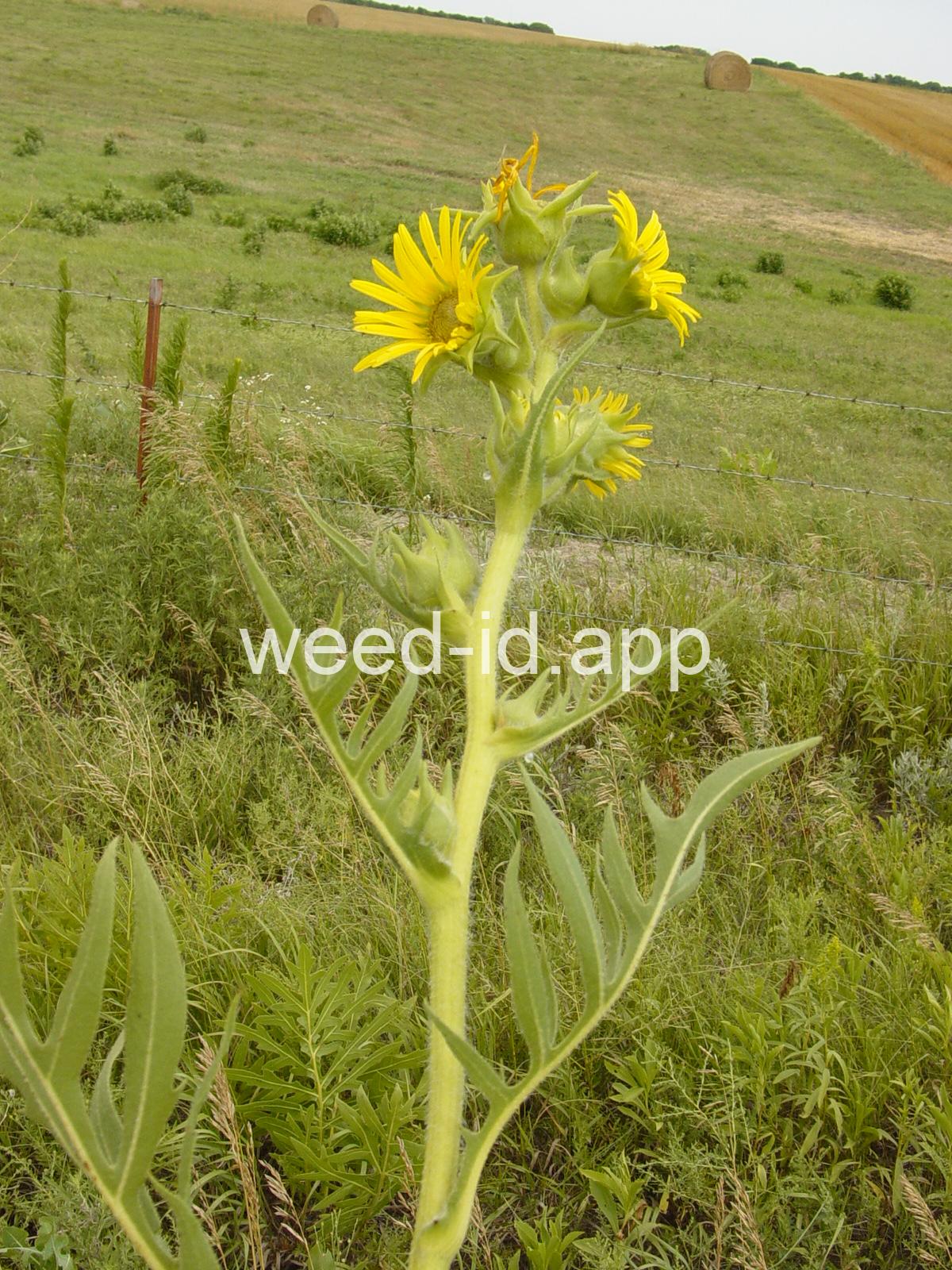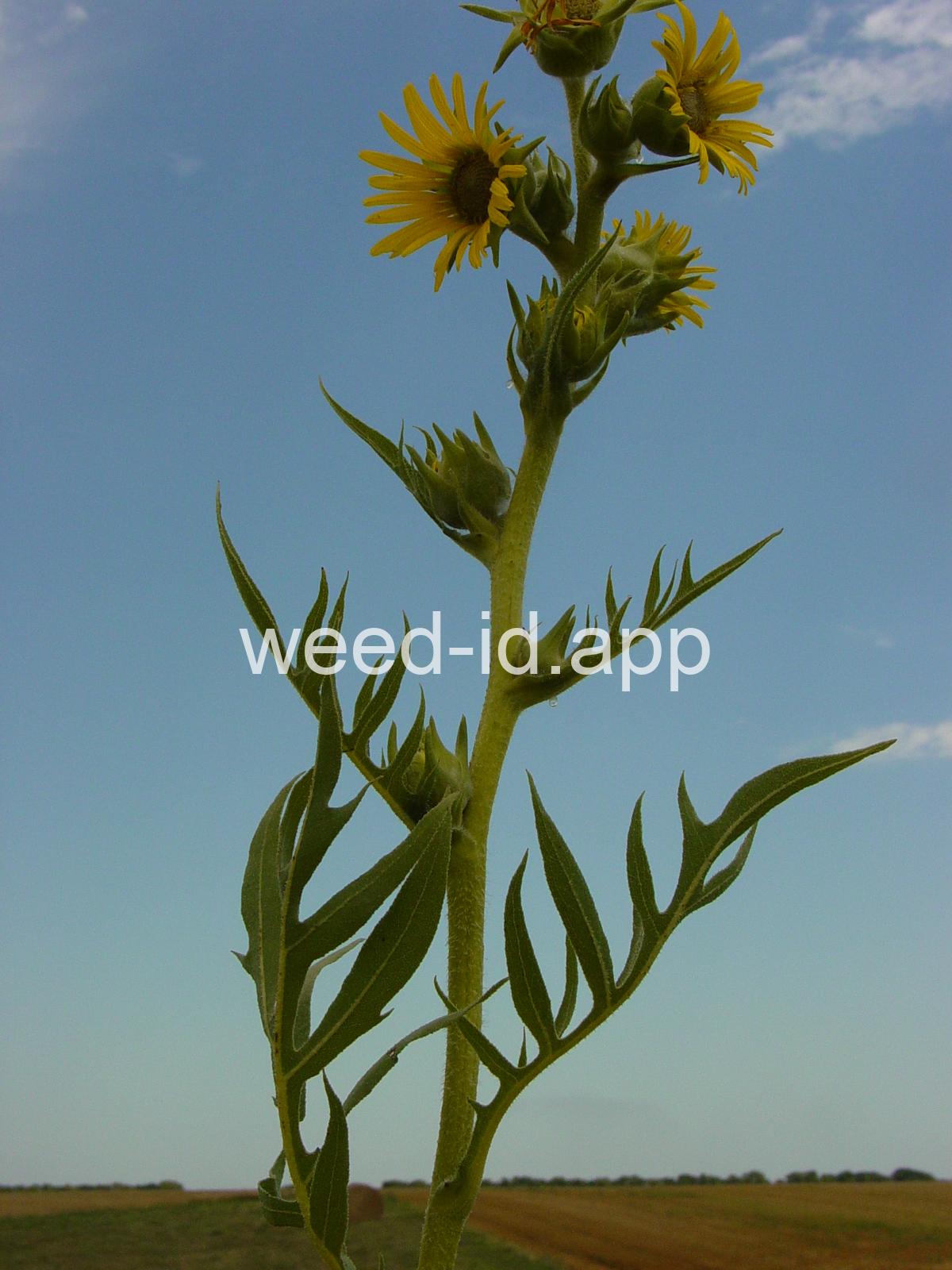 The common name of compassplant comes from the fact that the basal leaves are usually aligned north and south. The specific name `laciniatum` means `divided into many long narrow segments` and describes the leaf margin.