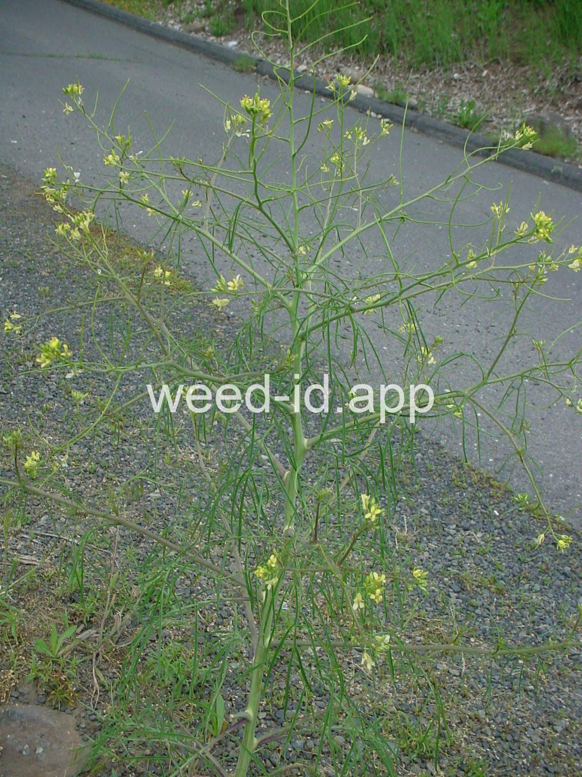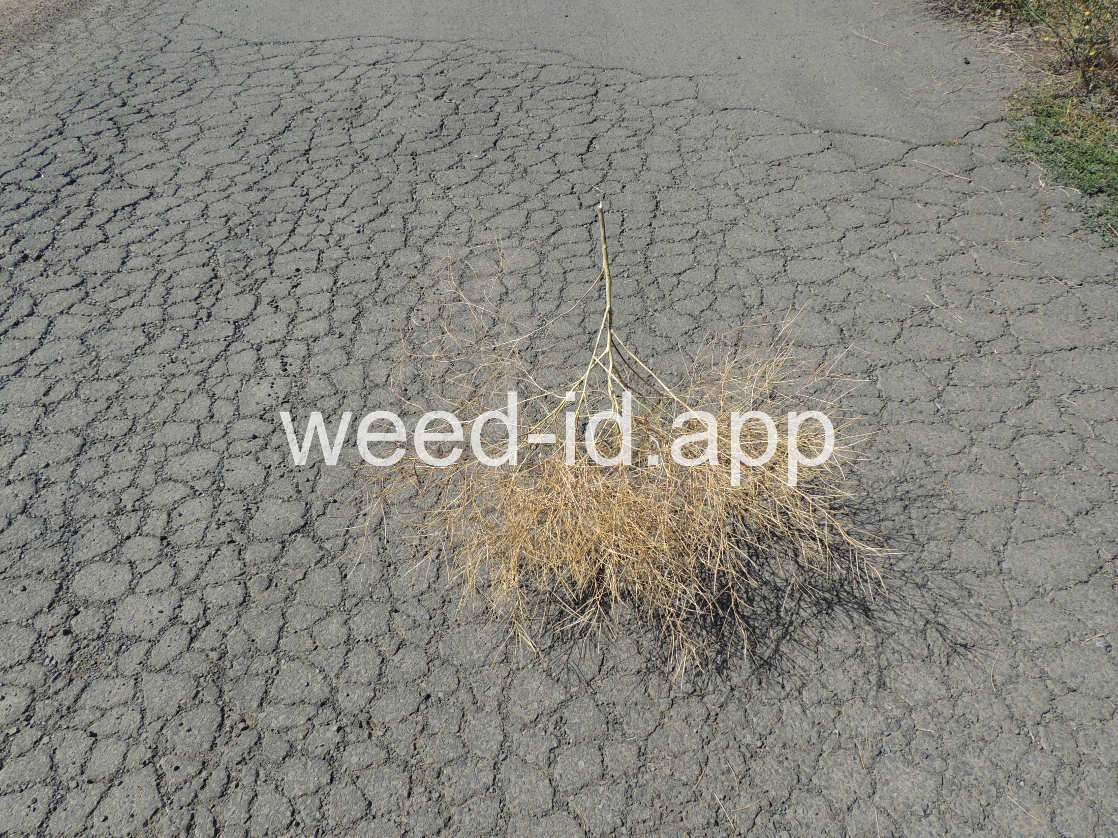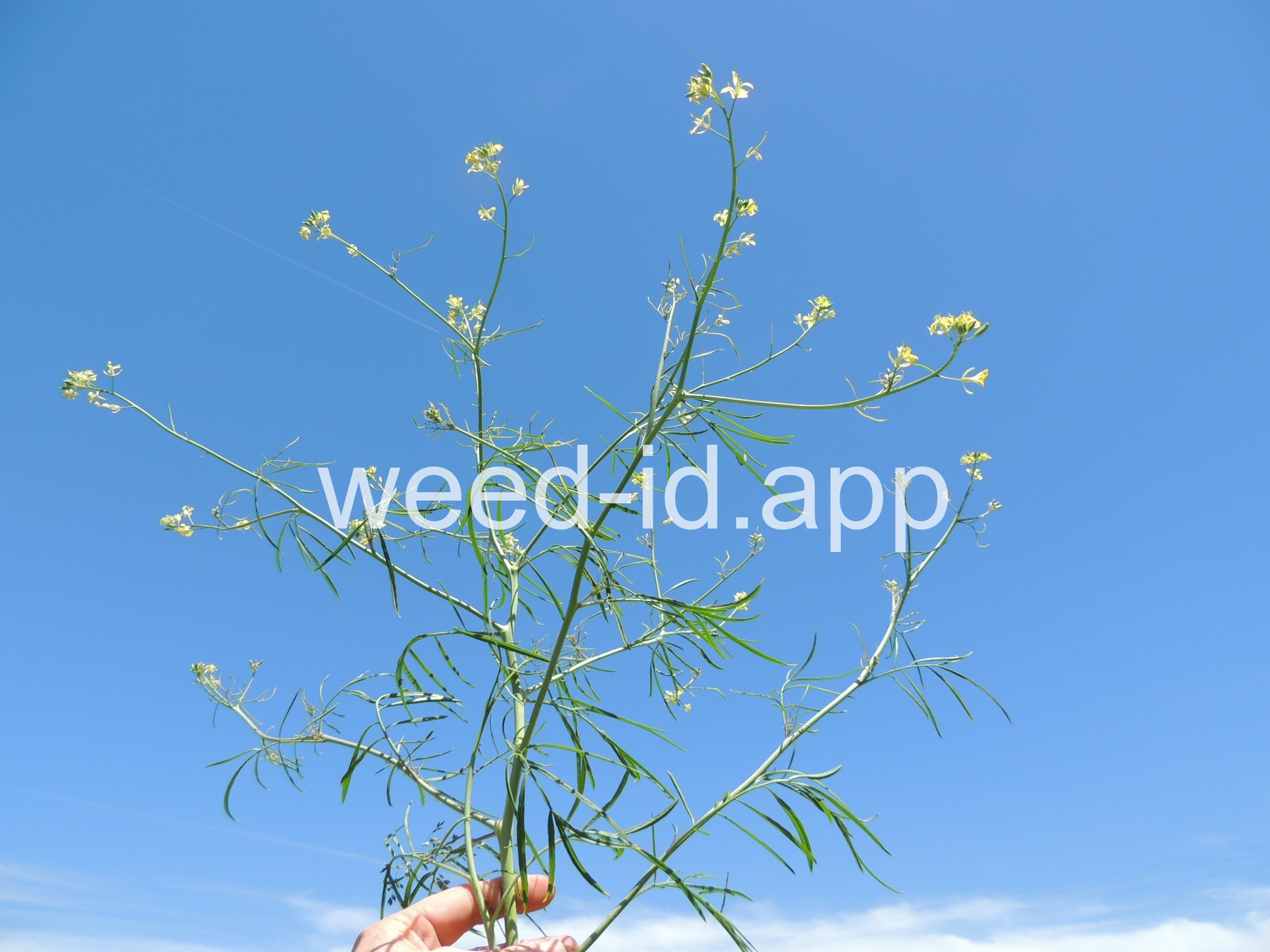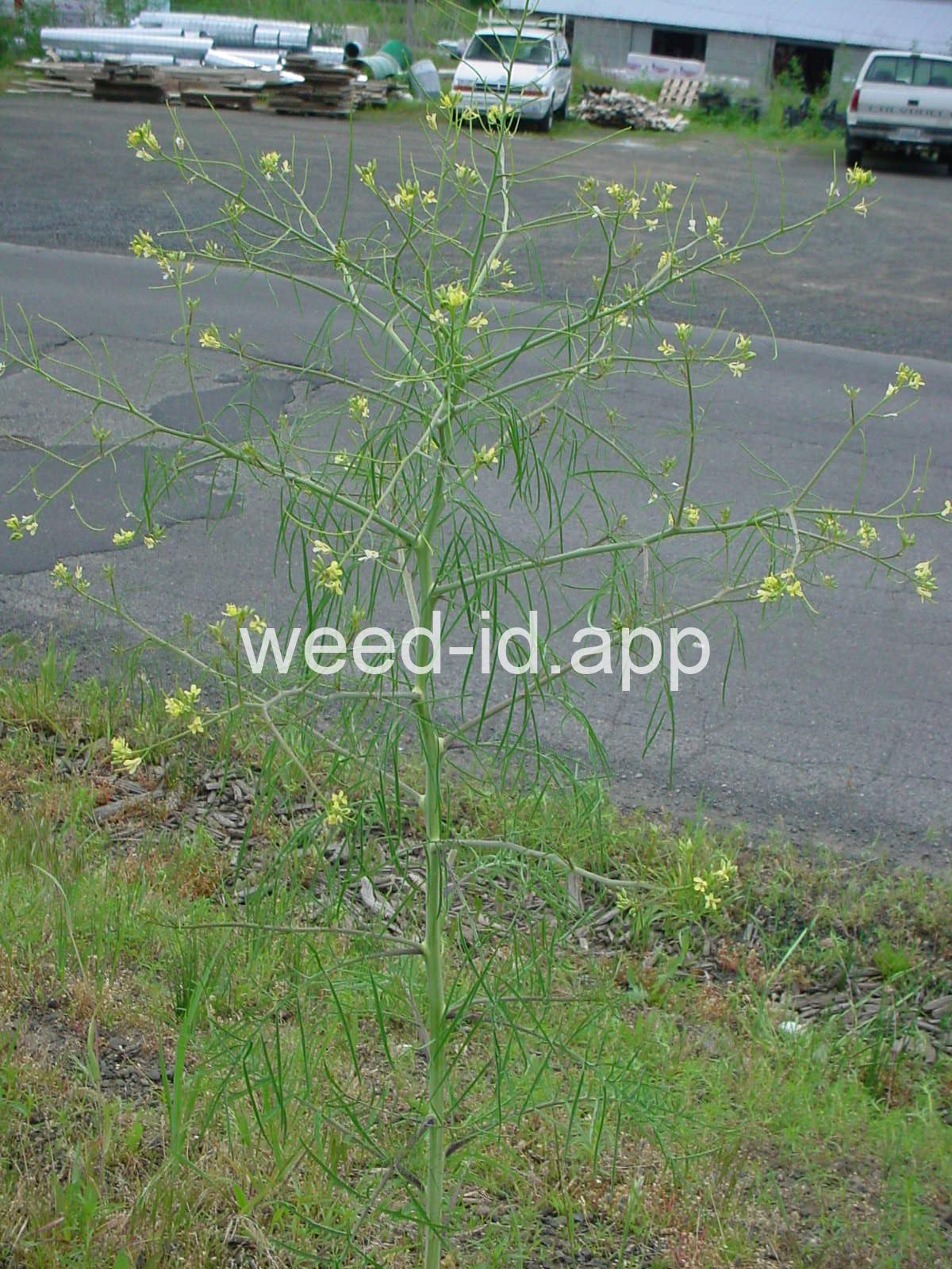 The seedling of this species is misidentified in the 1991edition of Weeds of the West (that`s yellow starthistle) but correct in the 1992 edition. Also known as `Jim Hill mustard` for the railroad man which it followed throughout the west. The seed pods, which are up to 4 inches long but only about 2 mm wide, are a distinctive feature of this species. Second only to Russian thistle in its prevalence as a tumbleweed in most areas. When the plants bolt in the spring, the flowering stalks of the larger plants can be peeled and eaten, raw or cooked.