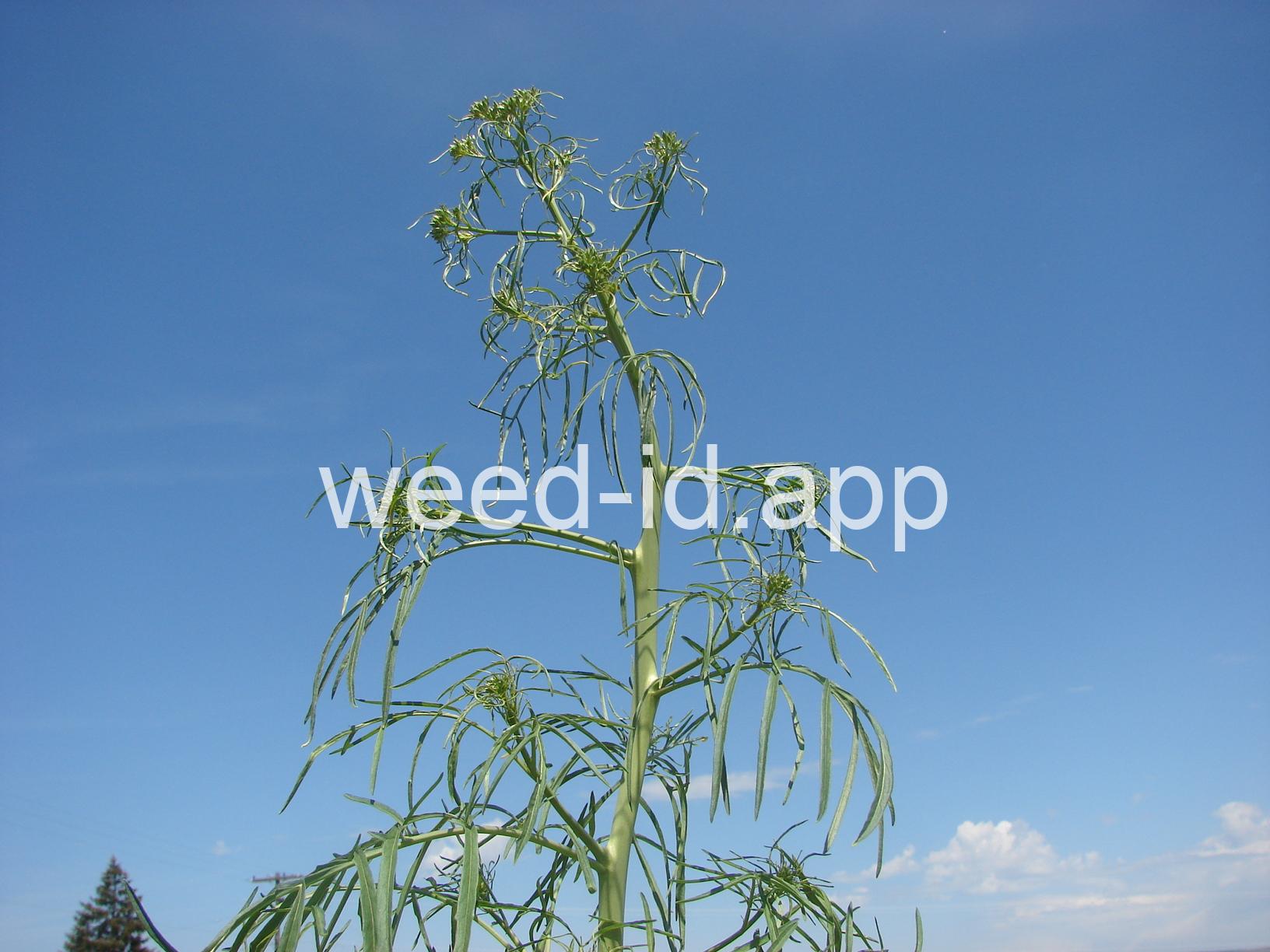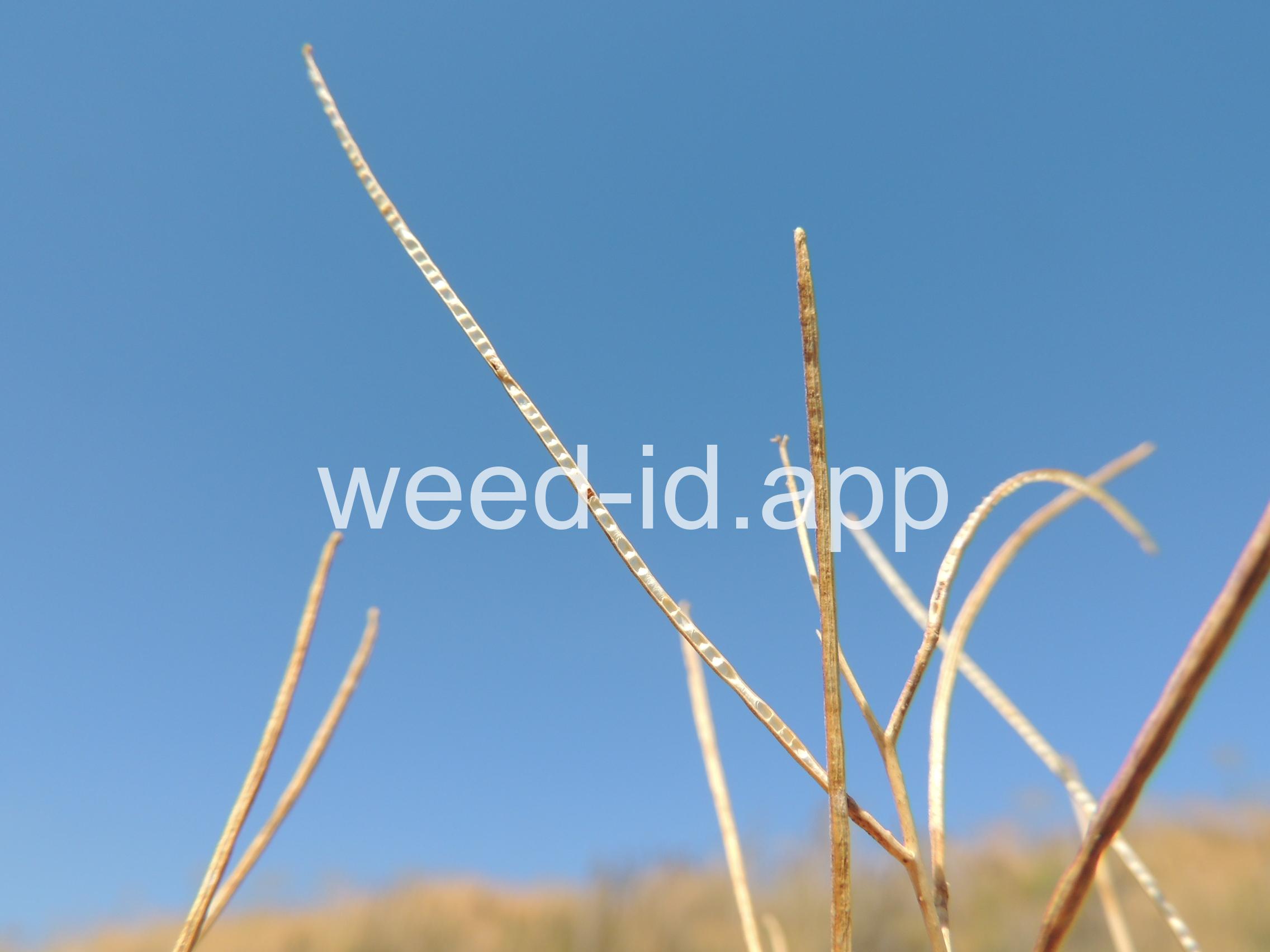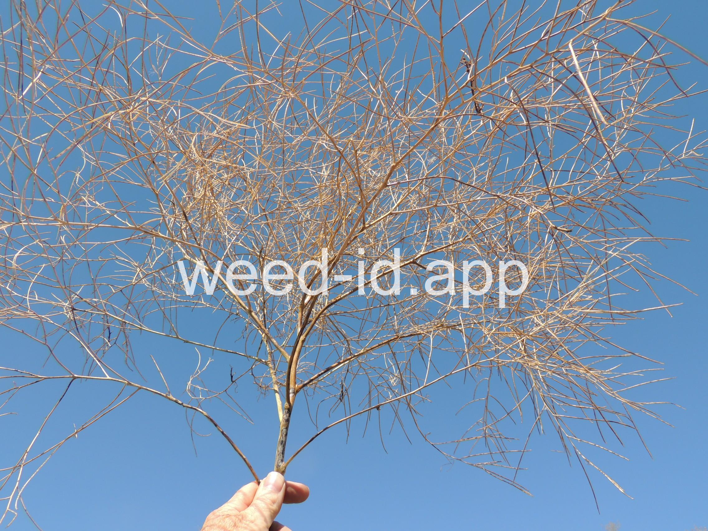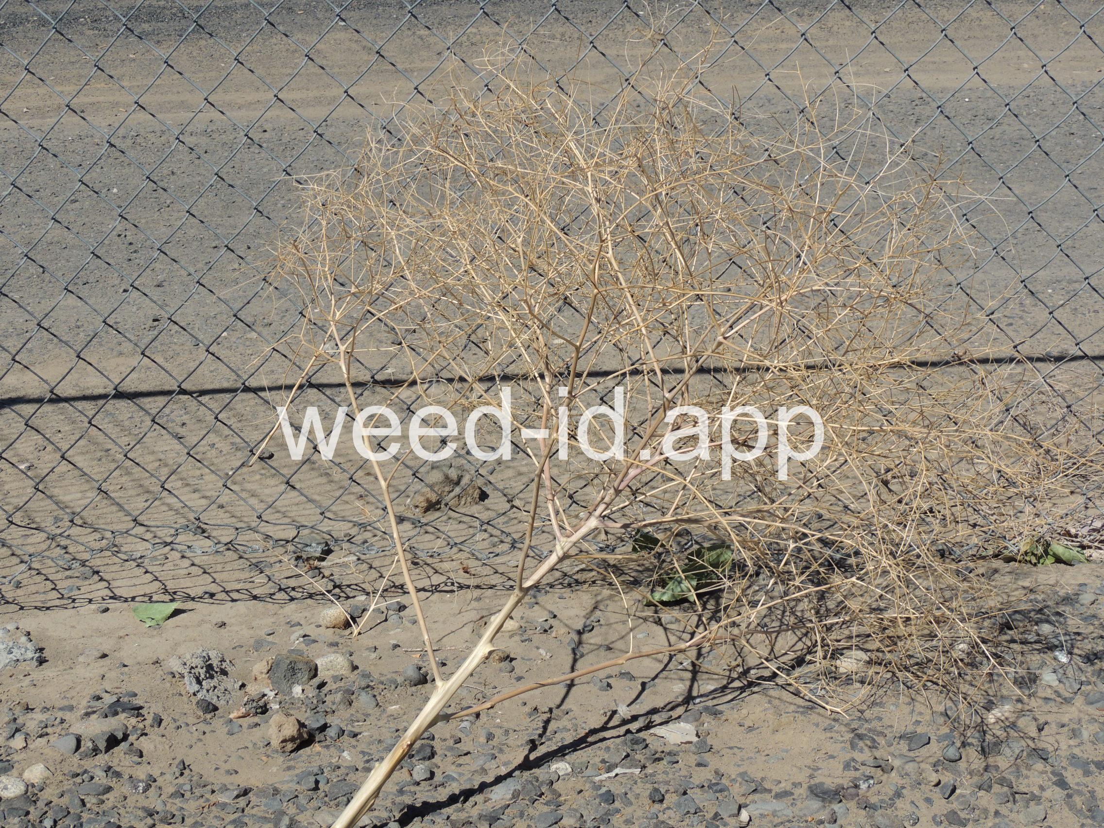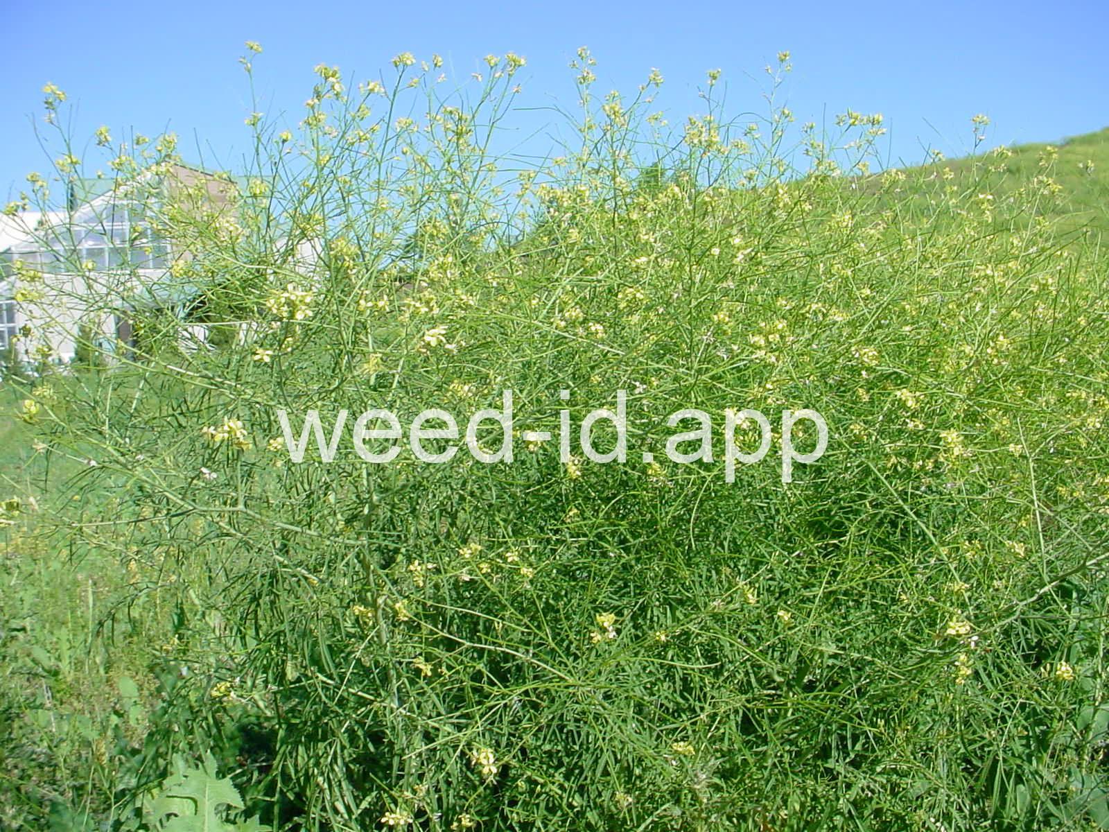 The seedling of this species is misidentified in the 1991edition of Weeds of the West (that`s yellow starthistle) but correct in the 1992 edition. Also known as `Jim Hill mustard` for the railroad man which it followed throughout the west. The seed pods, which are up to 4 inches long but only about 2 mm wide, are a distinctive feature of this species. Second only to Russian thistle in its prevalence as a tumbleweed in most areas. When the plants bolt in the spring, the flowering stalks of the larger plants can be peeled and eaten, raw or cooked.