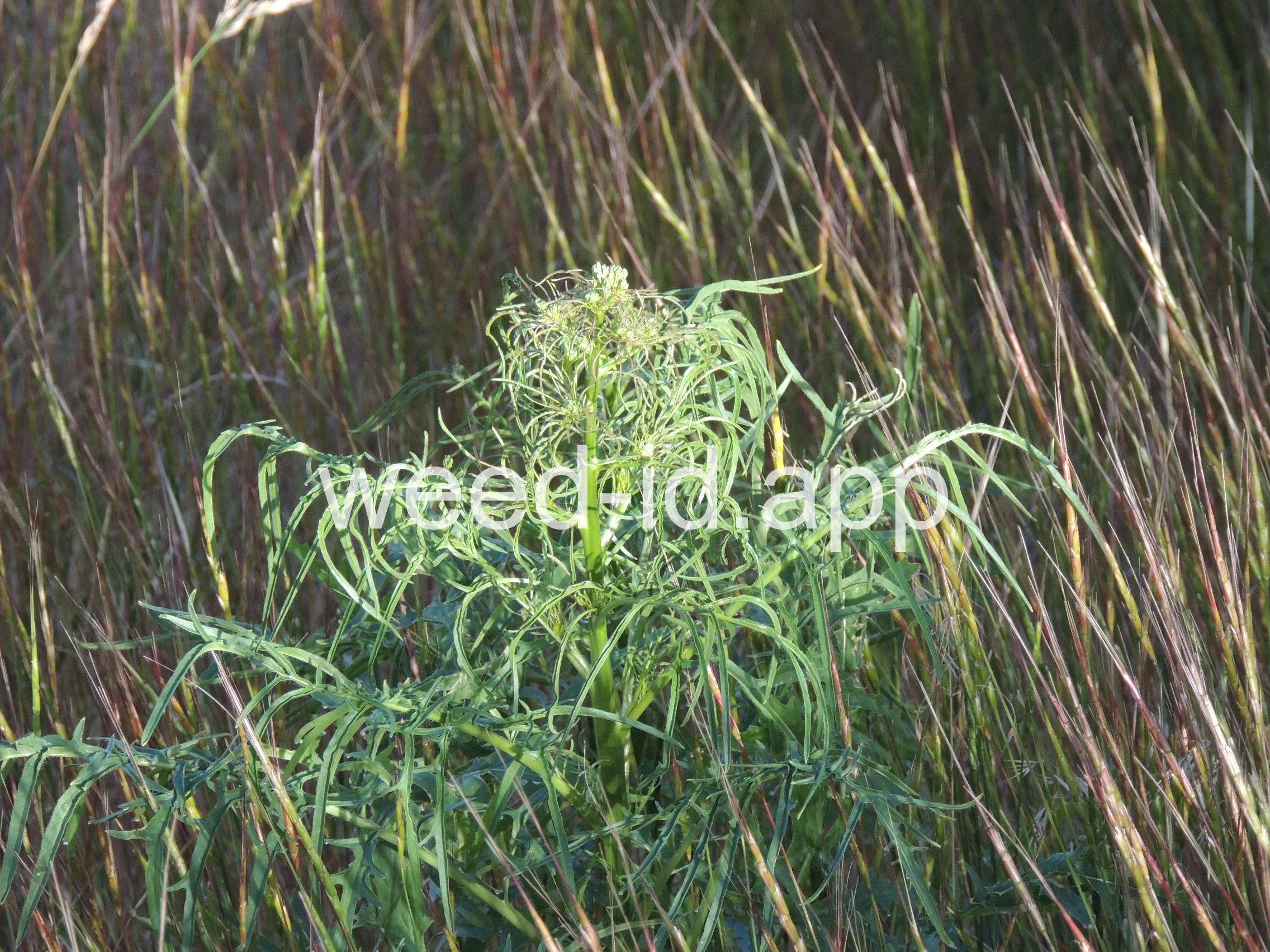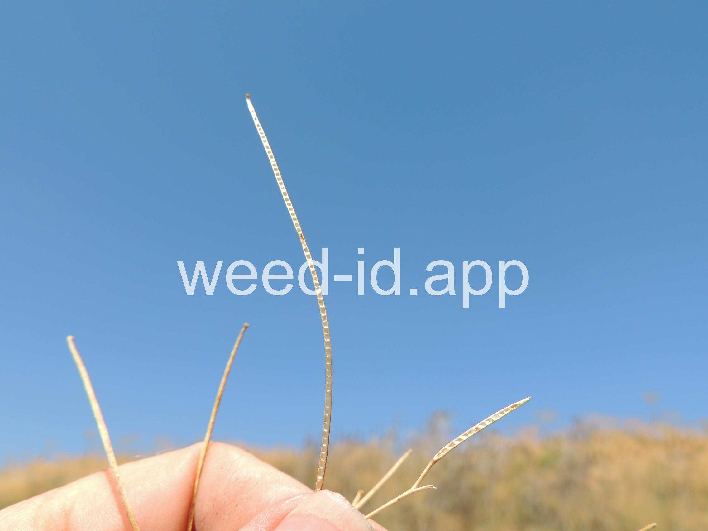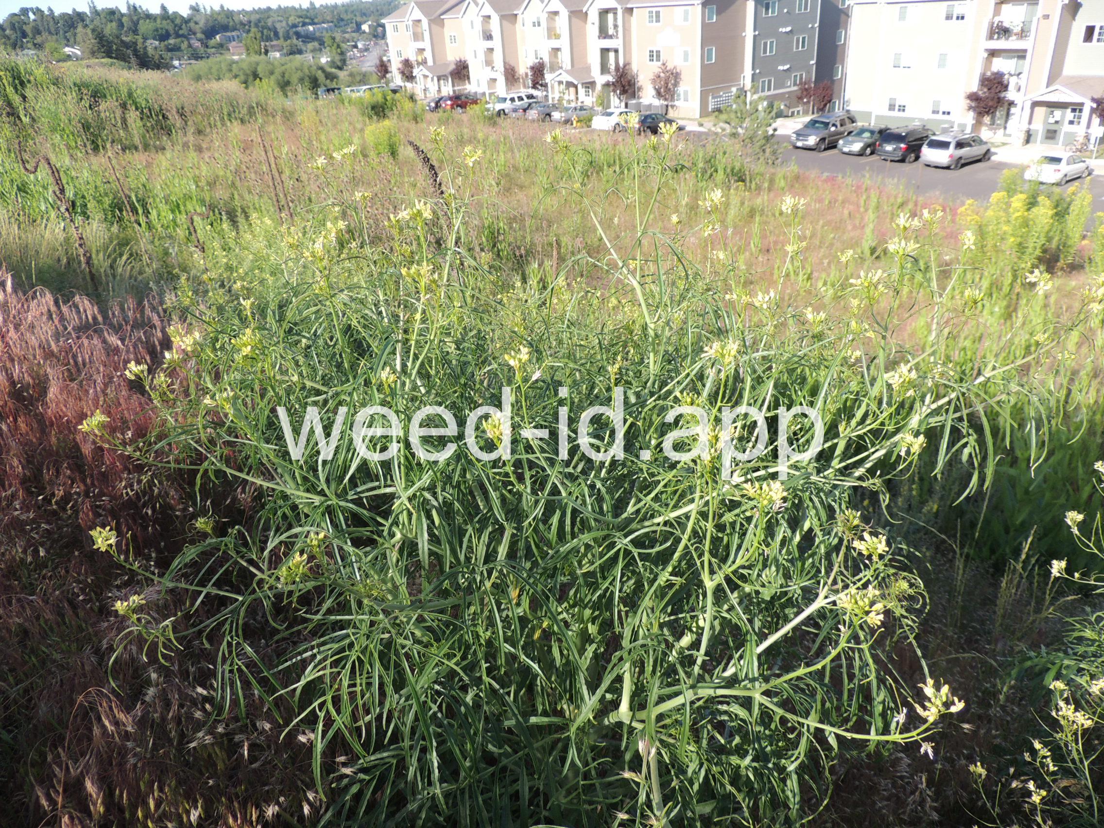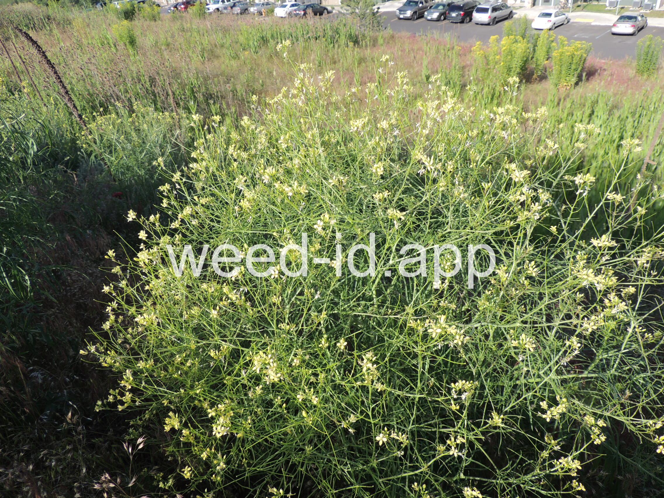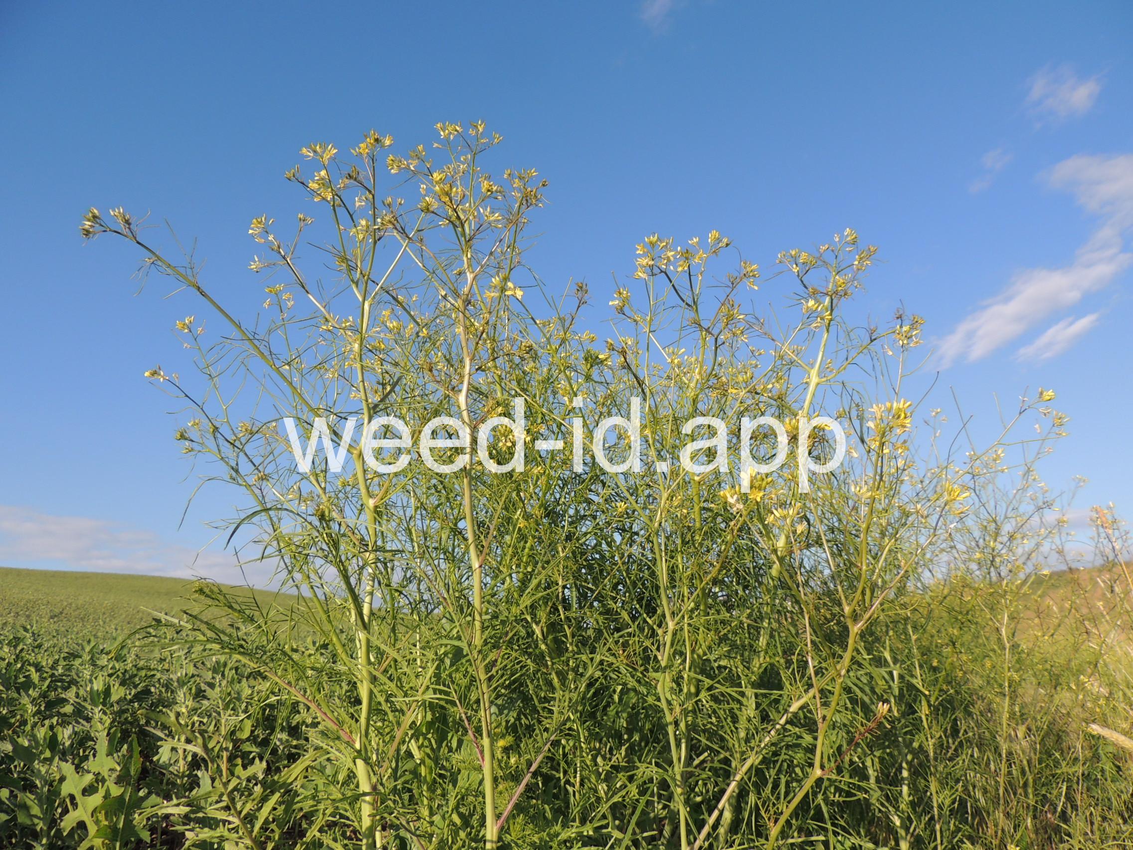 The seedling of this species is misidentified in the 1991edition of Weeds of the West (that`s yellow starthistle) but correct in the 1992 edition. Also known as `Jim Hill mustard` for the railroad man which it followed throughout the west. The seed pods, which are up to 4 inches long but only about 2 mm wide, are a distinctive feature of this species. Second only to Russian thistle in its prevalence as a tumbleweed in most areas. When the plants bolt in the spring, the flowering stalks of the larger plants can be peeled and eaten, raw or cooked.