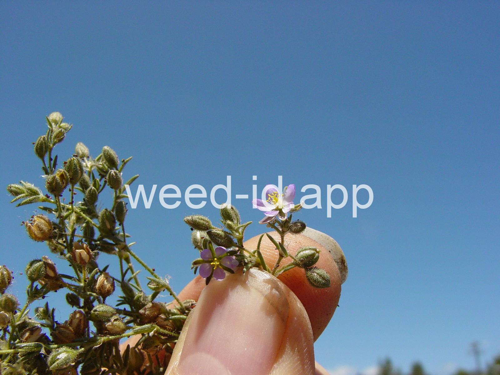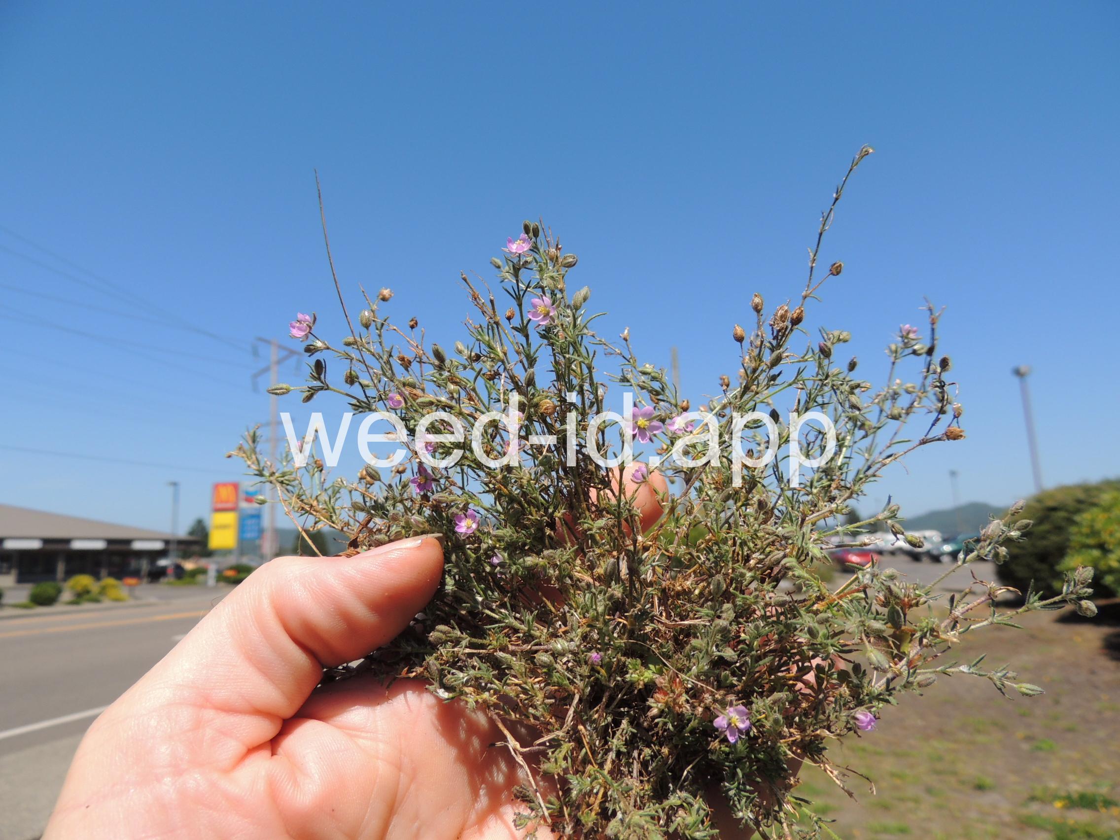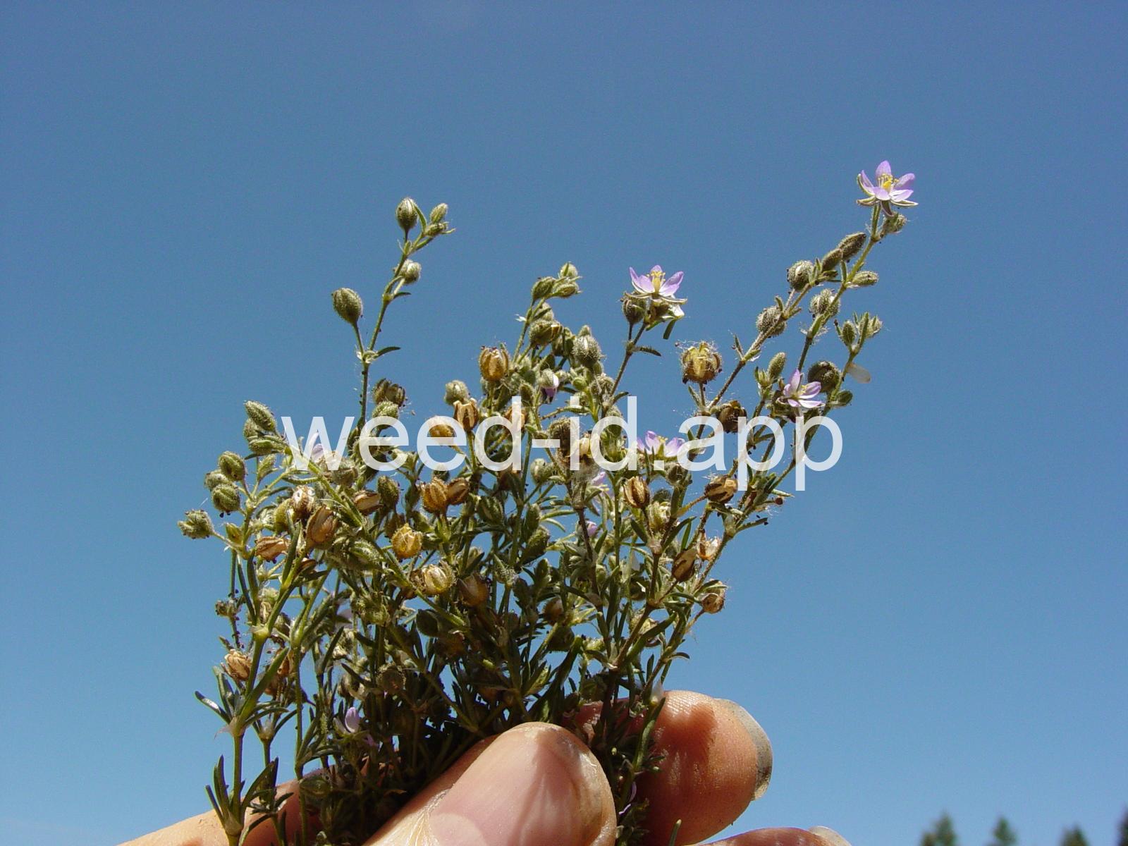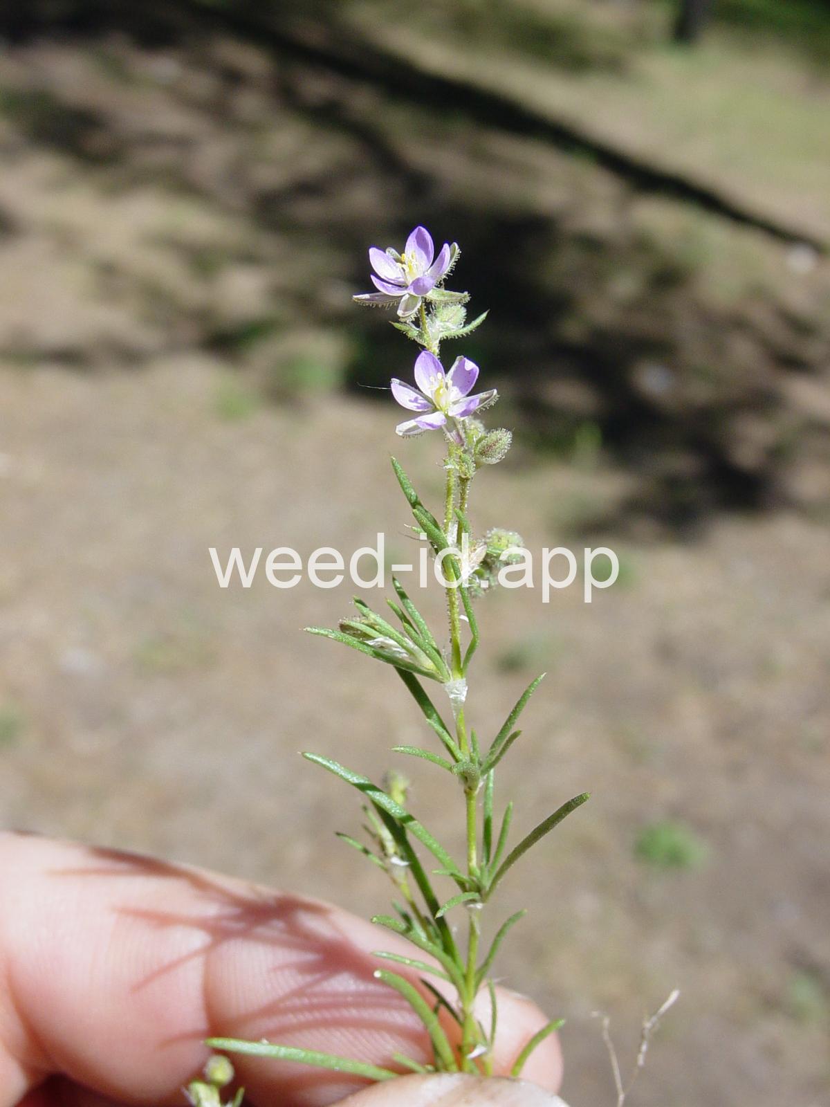 A prostrate to ascending annual with narrowly linear leaves and small, pink flowers. The leaves clustered (fascicled) and each leaf subtended by a dry membranous triangular stipule.
