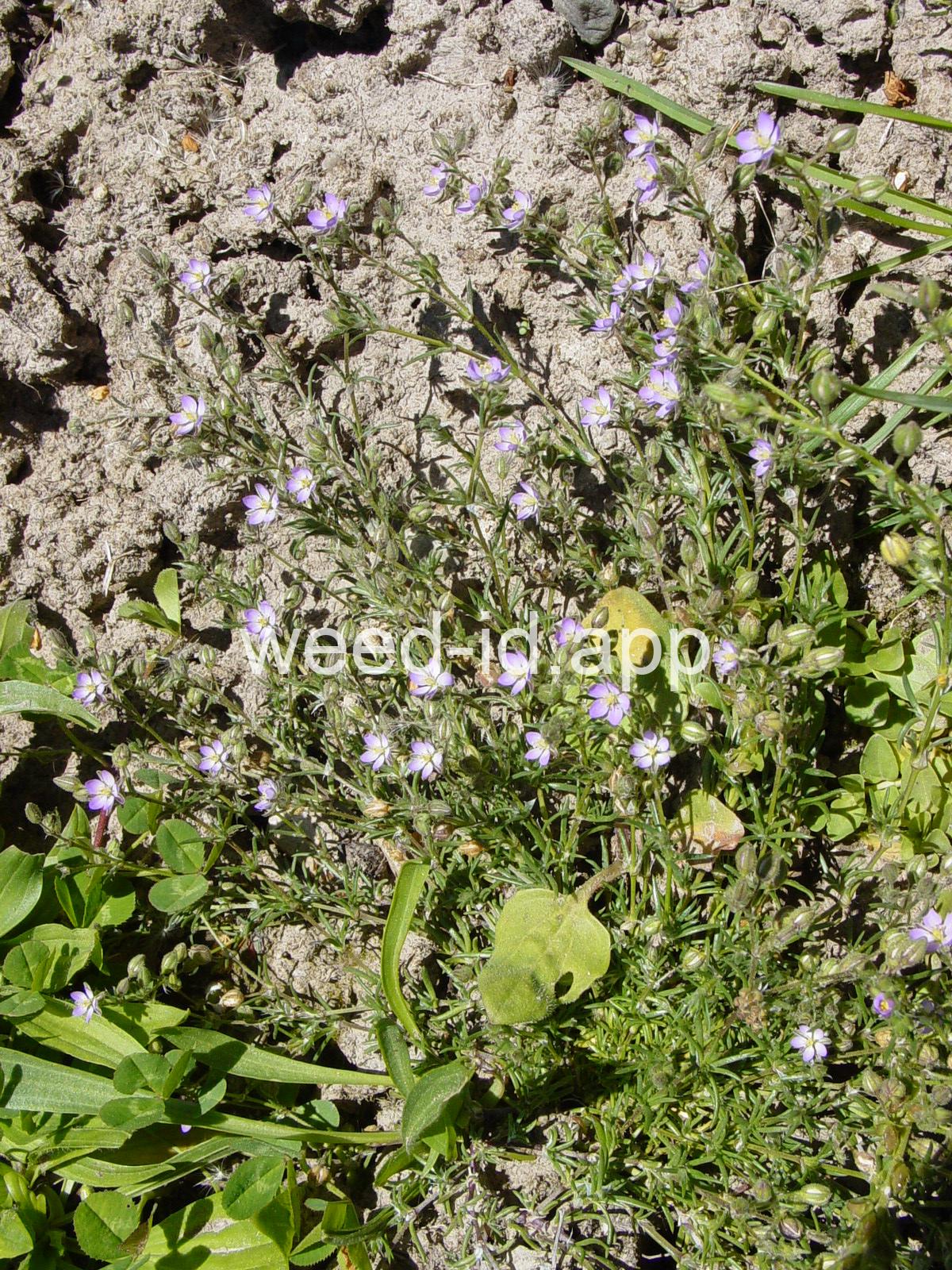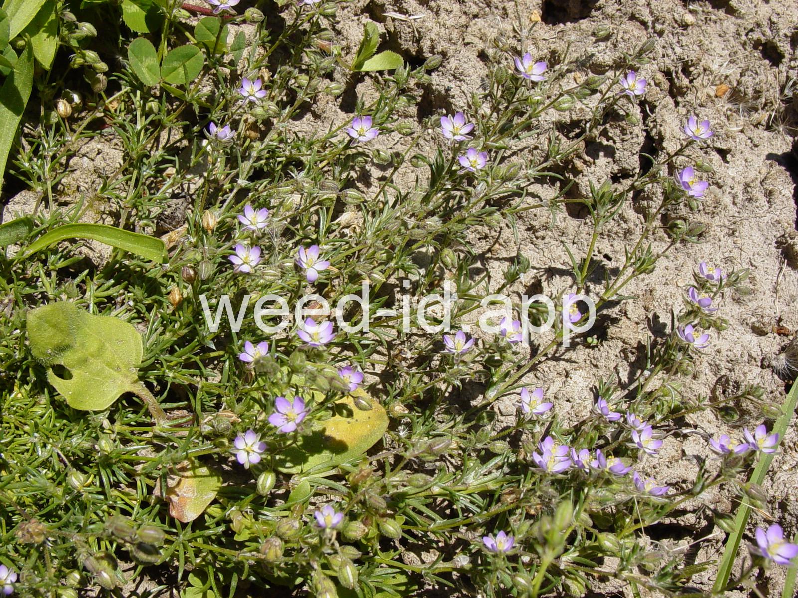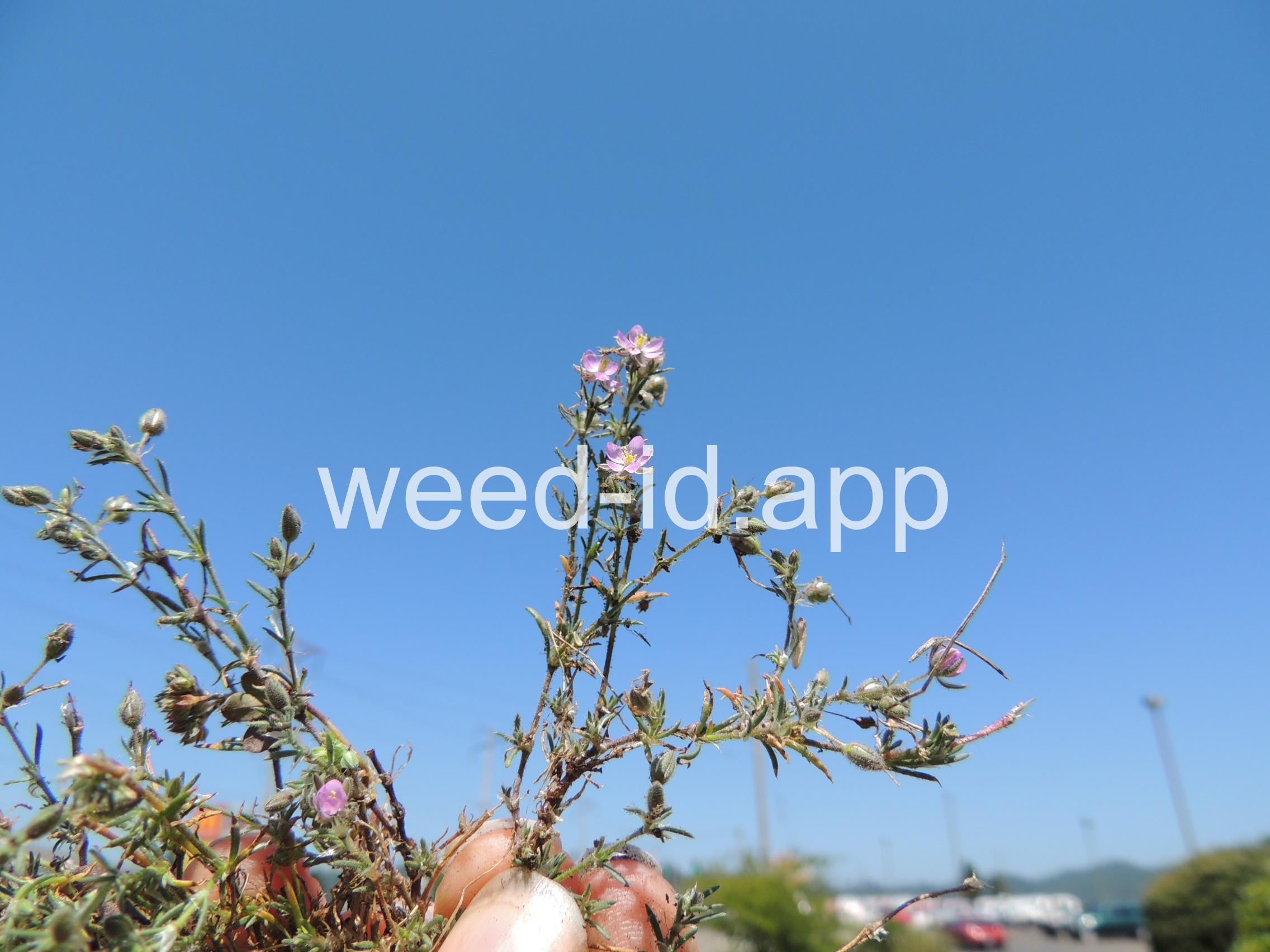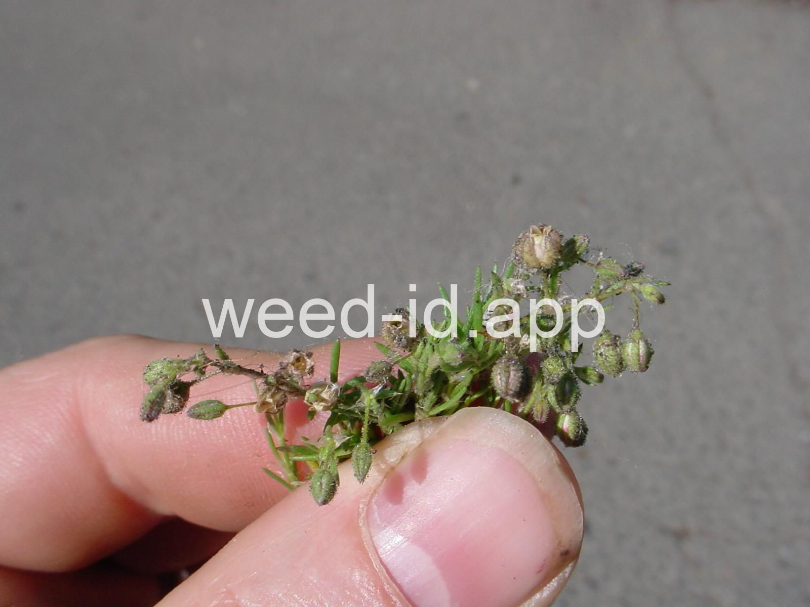 A prostrate to ascending annual with narrowly linear leaves and small, pink flowers. The leaves clustered (fascicled) and each leaf subtended by a dry membranous triangular stipule.