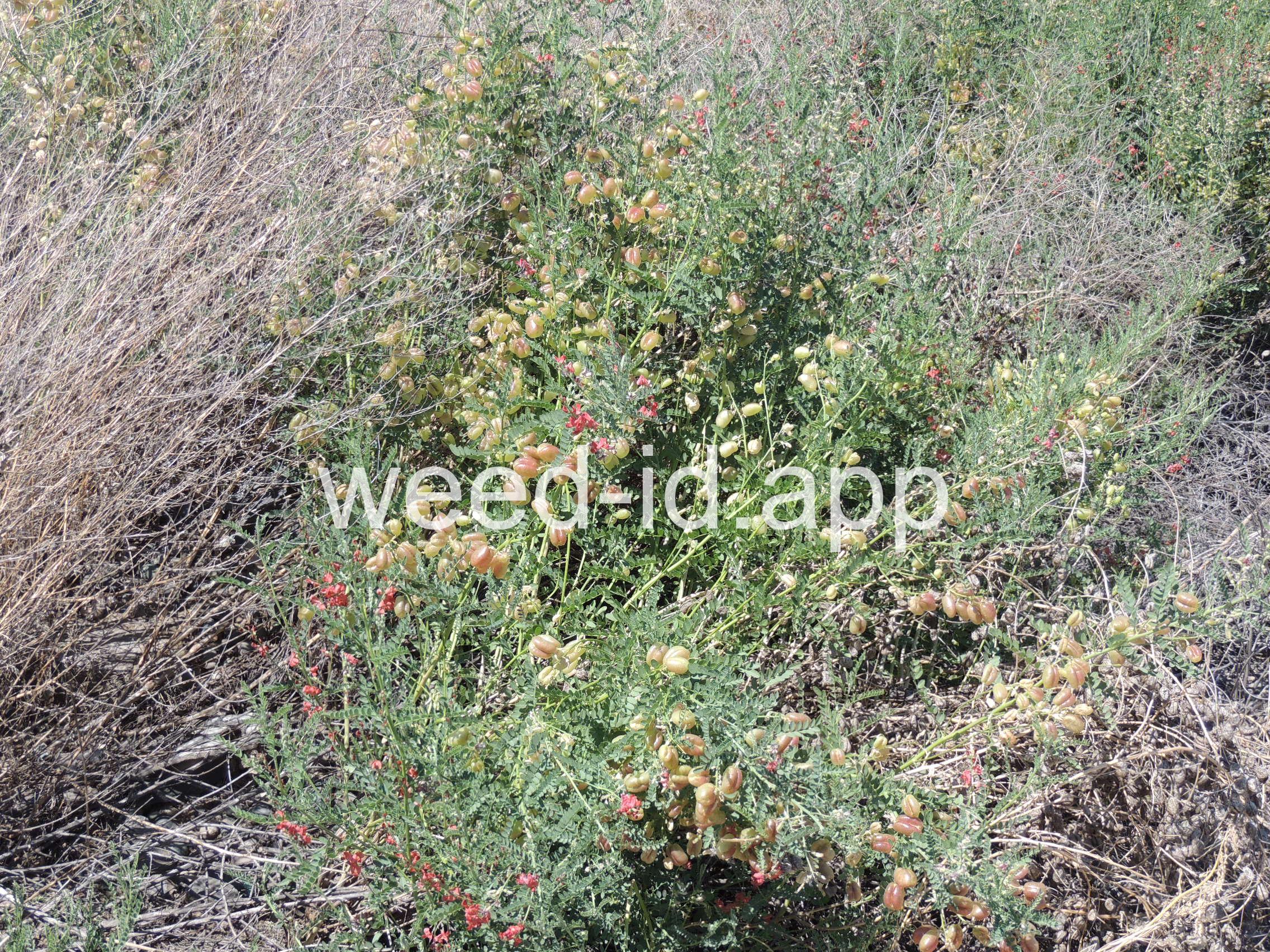 Also known as `Austrian peaweed,` this rhizomatous perennial prefers moist soils. Its strongly inflated fruits and brick red flowers are very distinctive. Listed as a noxious weed in many states due to the fact that the seed cannot be removed from alfalfa seed because of its similar size and shape.