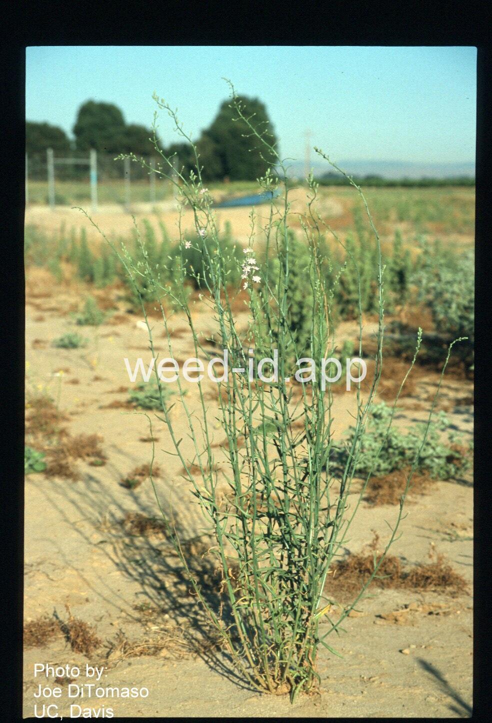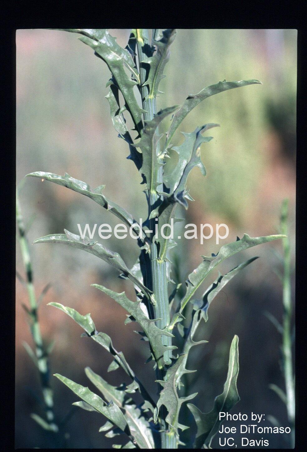 A native annual usually with five flowers per head. The leaves with distinct, short teeth along the margin. Flowers light lavender. Despite the singular common name, there are other species in this genus.