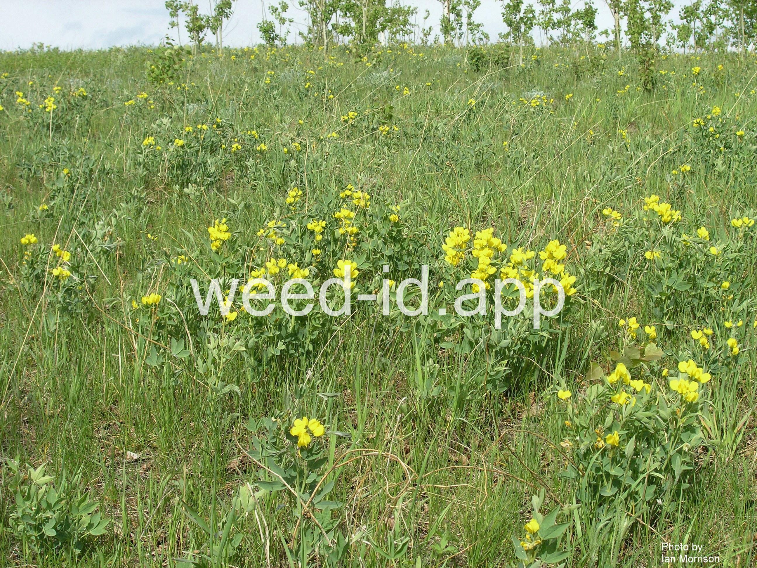 Similar to Thermopsis montana but mostly east of the Rockies and with strongly curved pods.