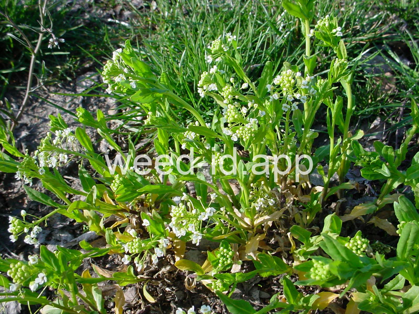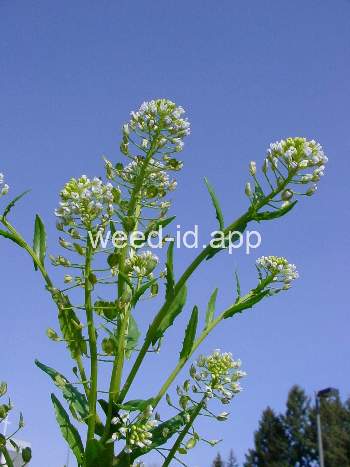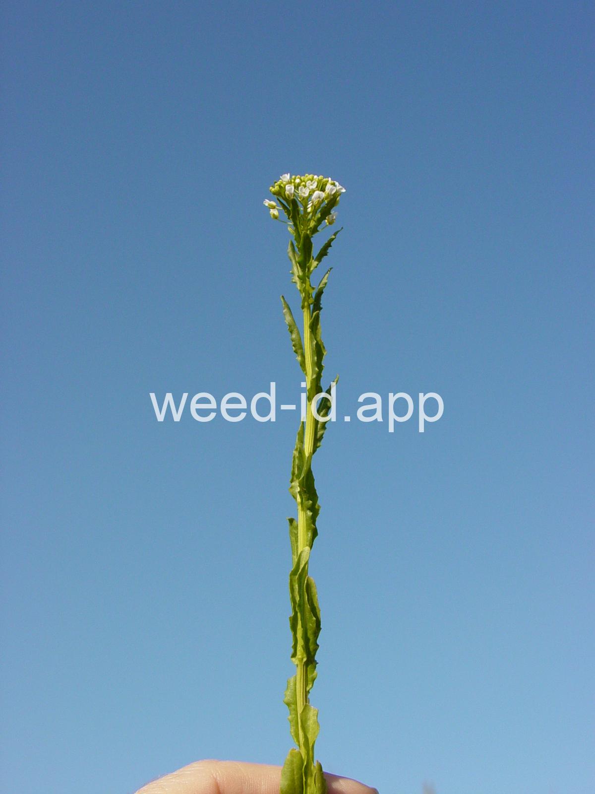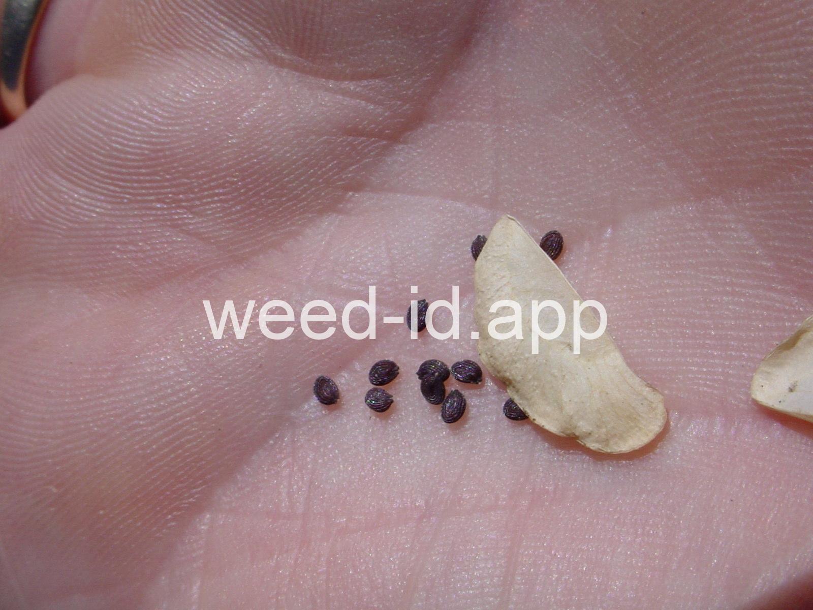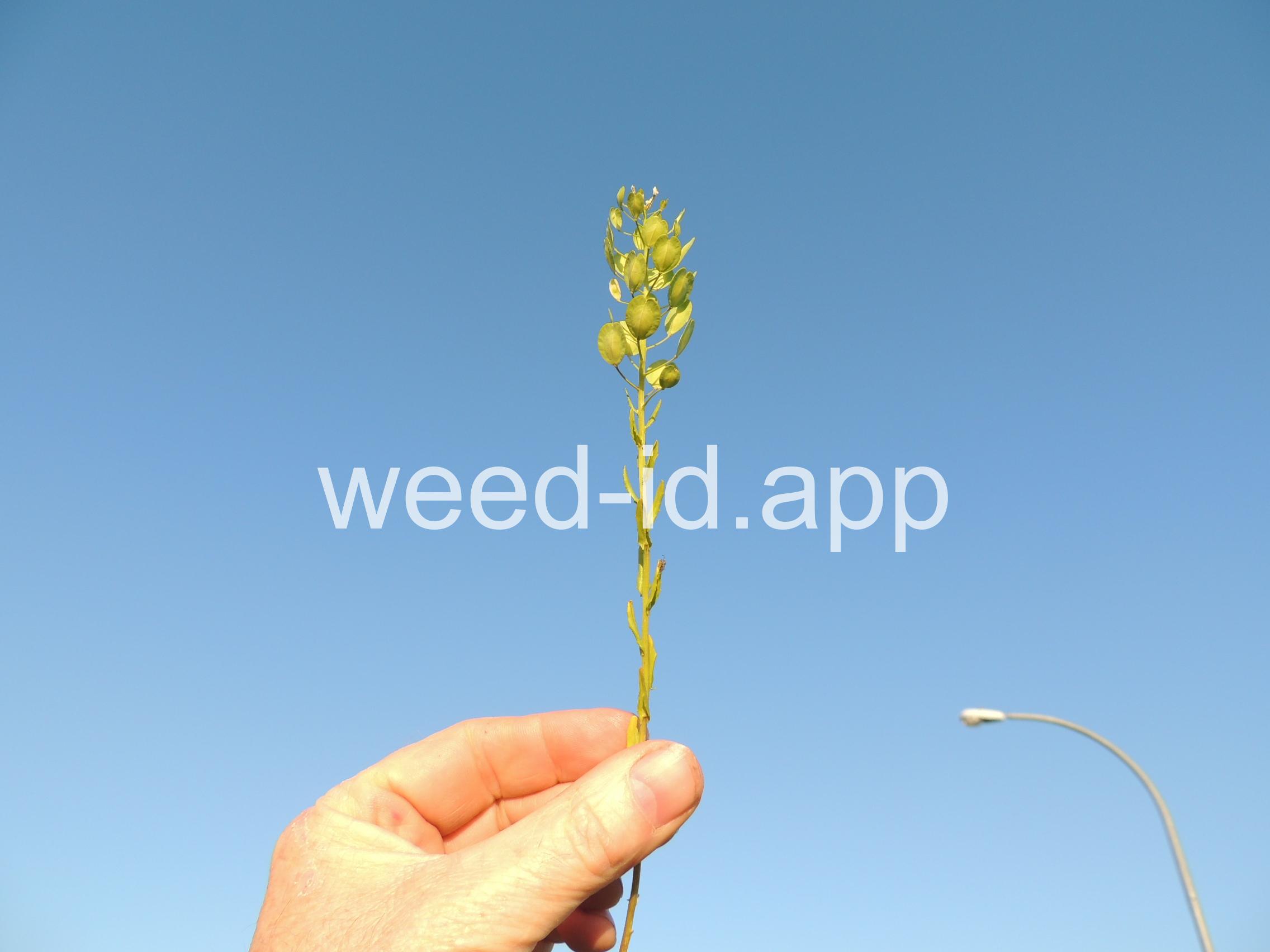 Believe it or not this foul smelling annual weed was once grown as an oil crop. The odor is the best character for identification even in the seedling stage. Also known as `fanweed;` both common names referring to the disk-shaped seed pods.