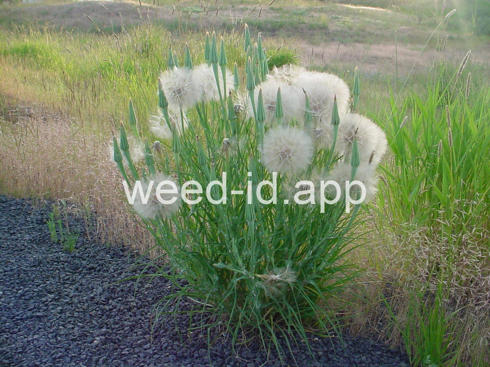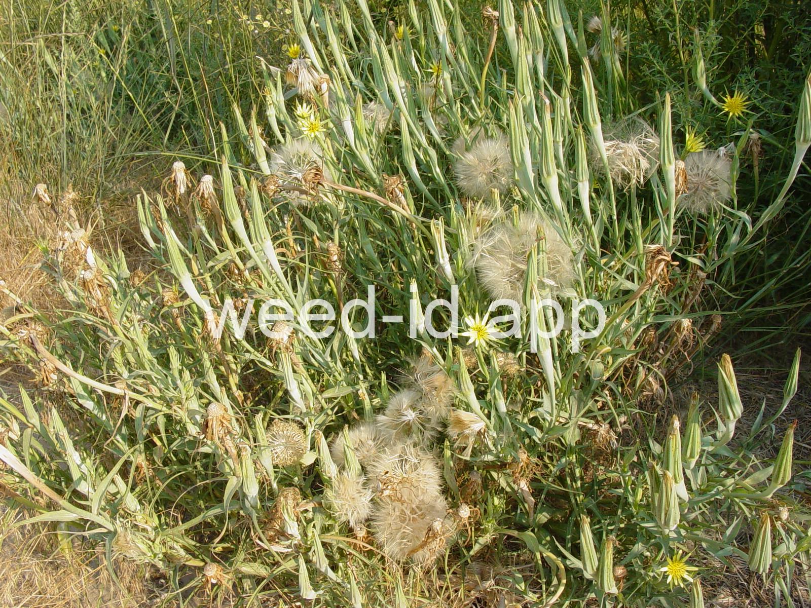 This genus has several species with yellow or purple flowers. They go by a variety of common names, including salsify, goatsbeard, oyster-root, and vegetable-oyster. The last two refer to the large, edible, white taproot which supposedly tastes like oysters and was the reason the plant was imported. Its long, narrow leaves are often mistaken for grass but can easily be distinguished by the milky juice.