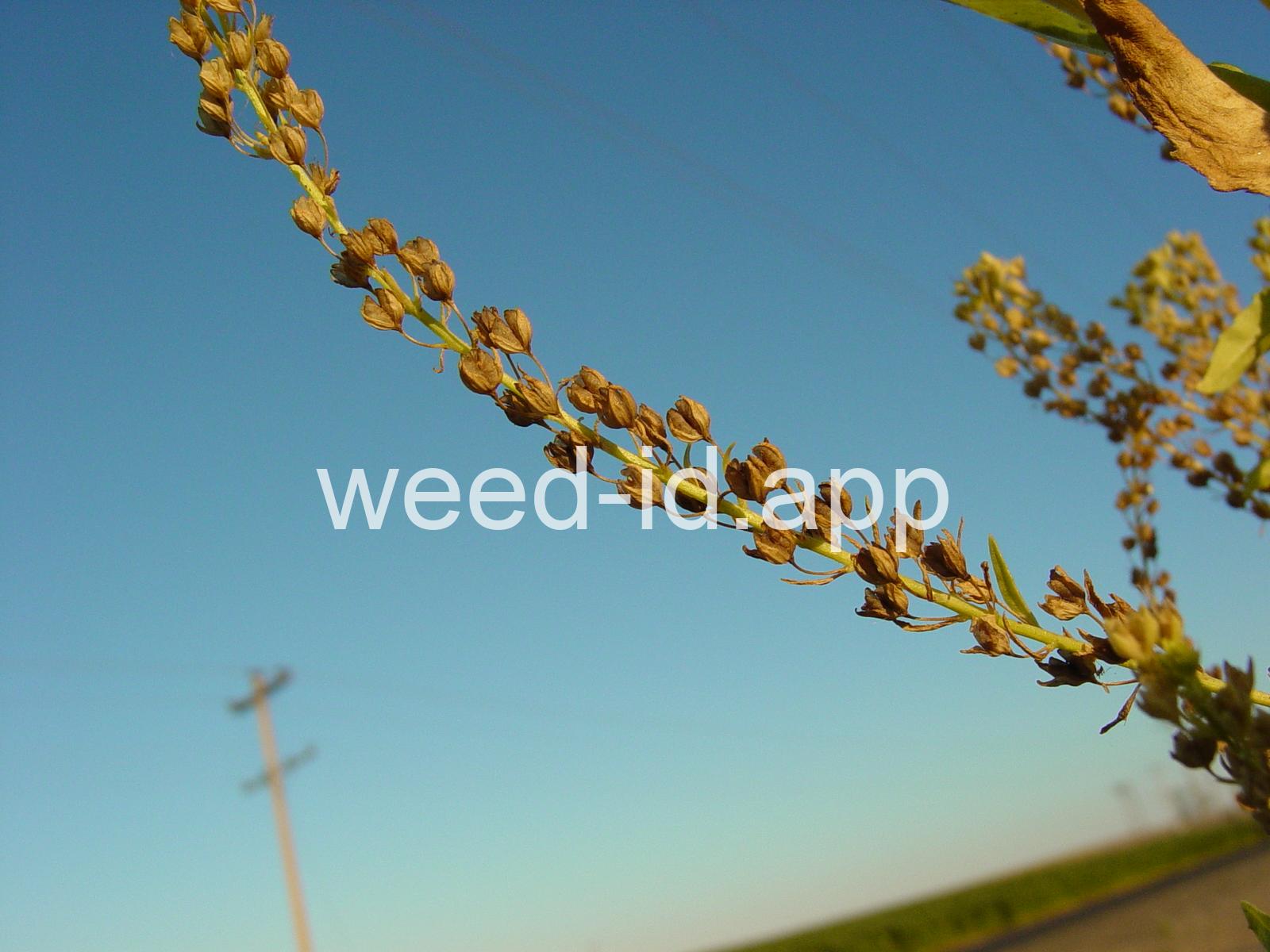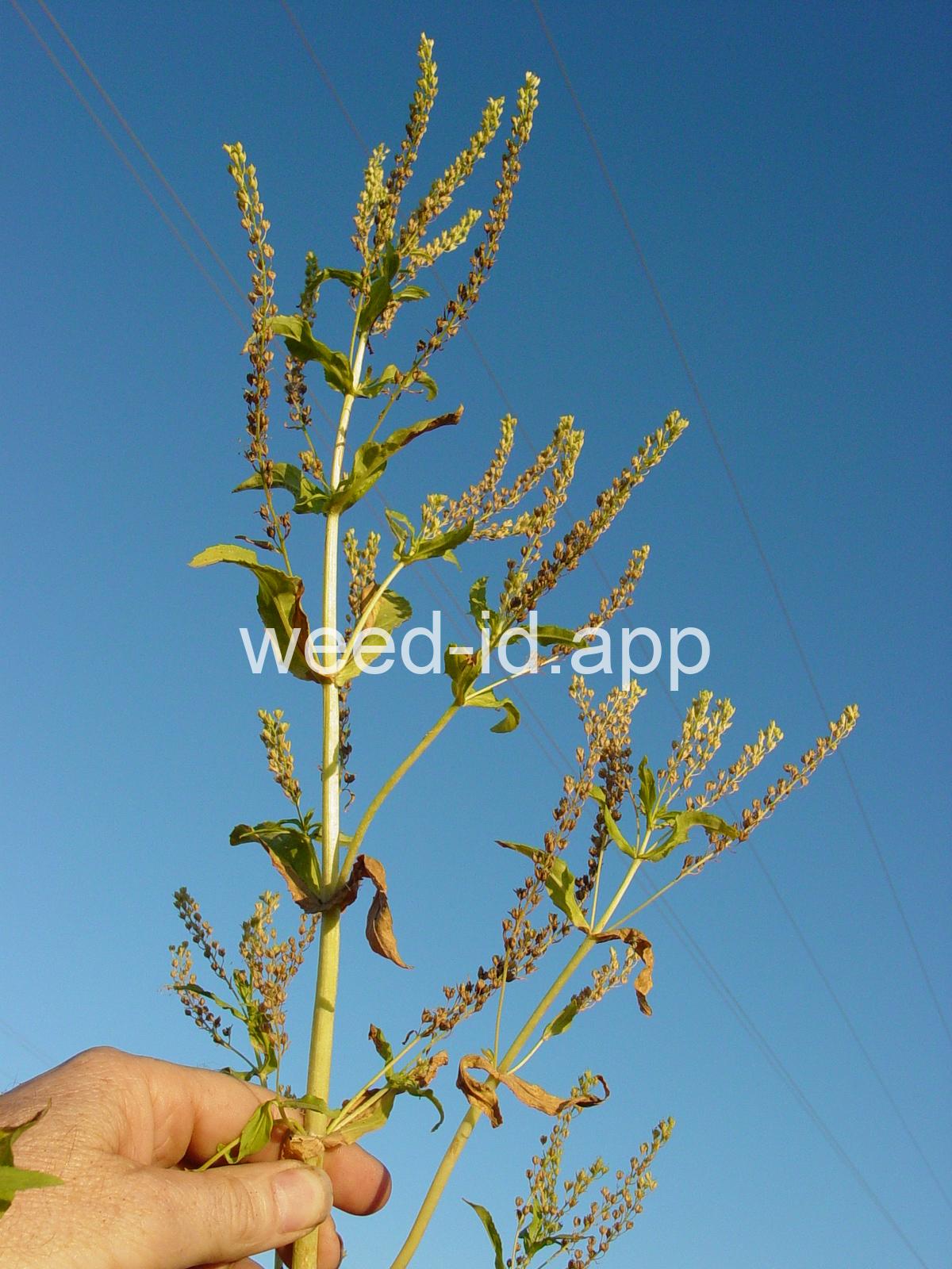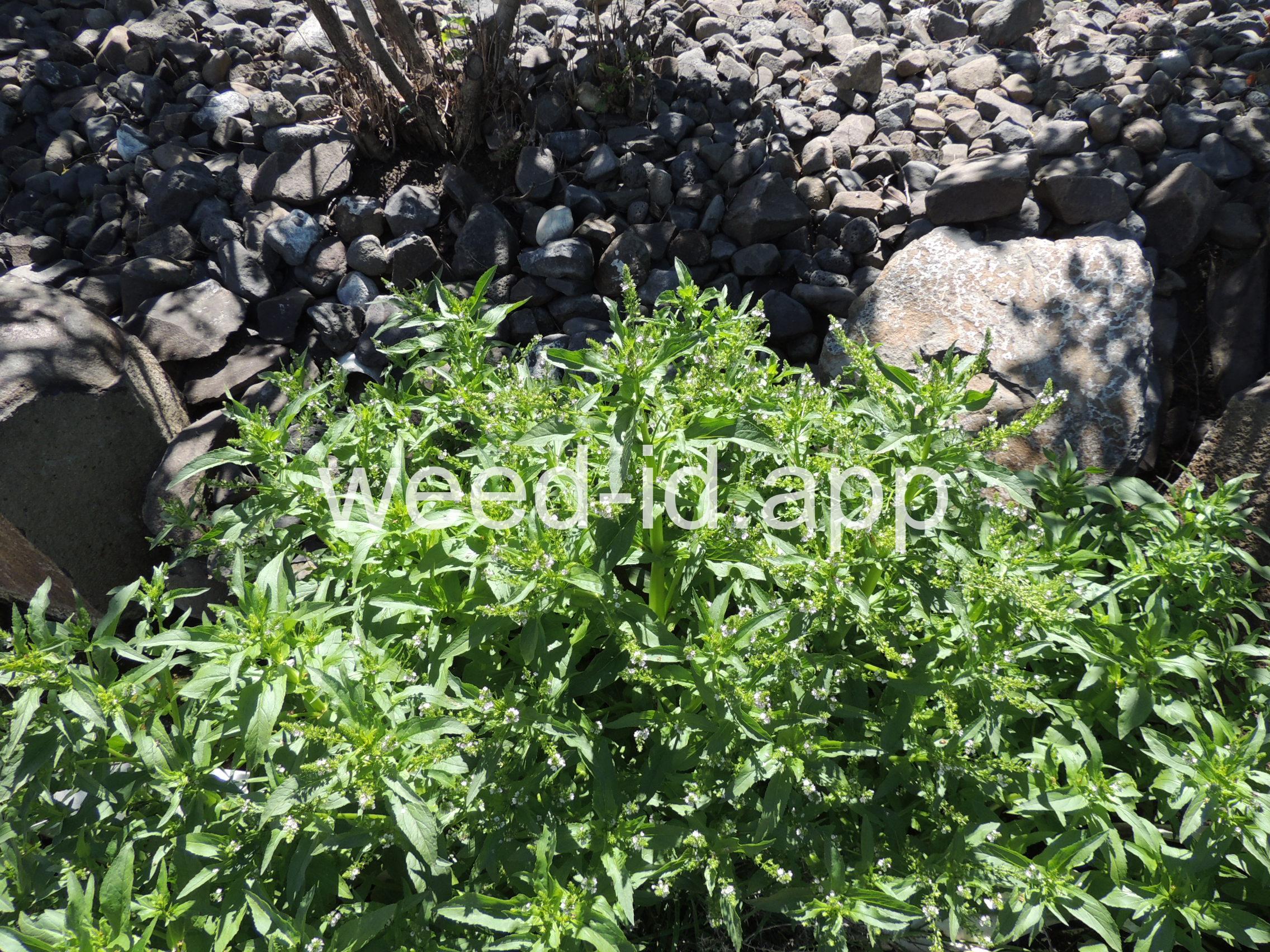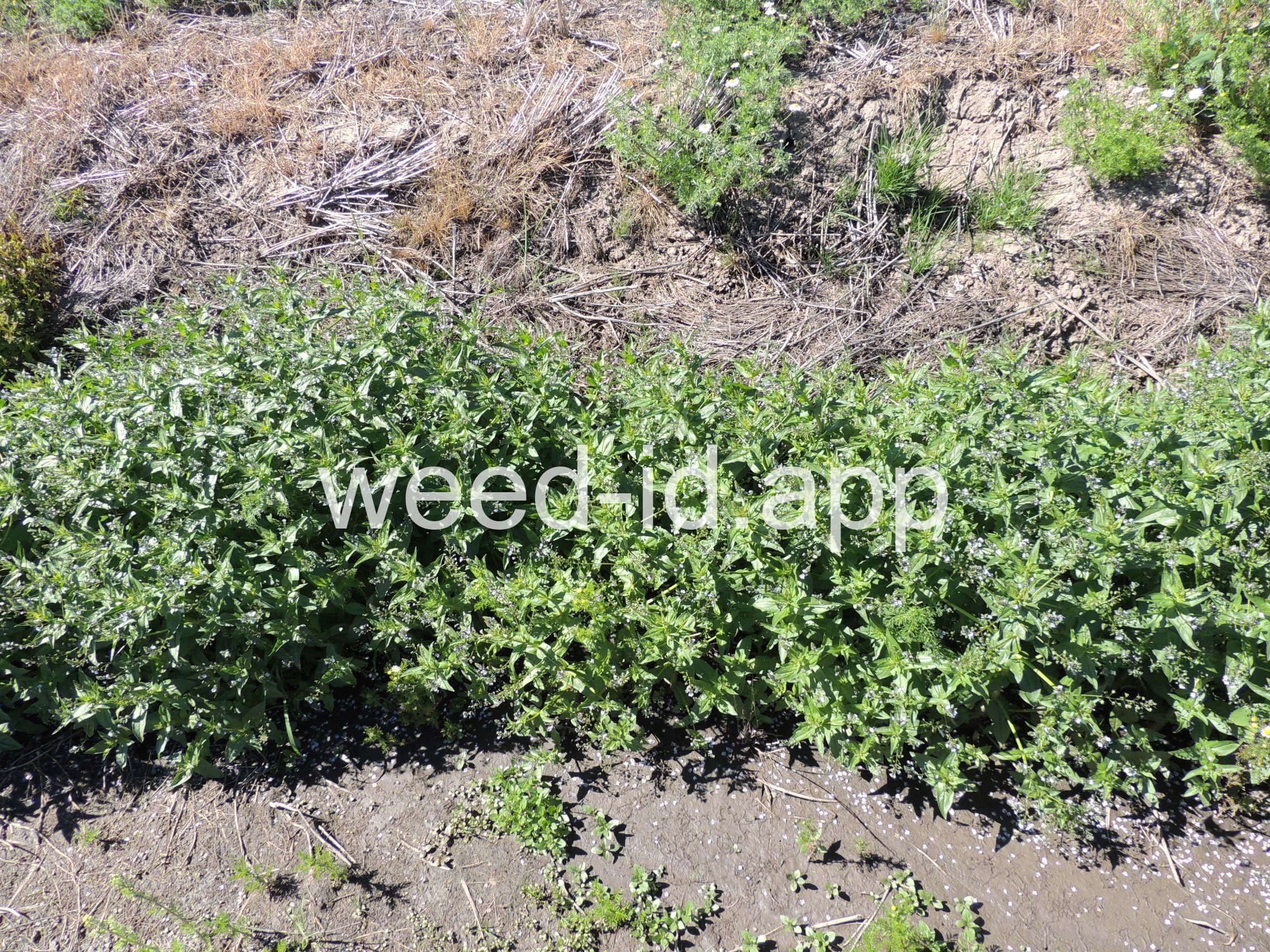 A common species of drainage ditches. Often found with monkey flower. The leaves are elongate and opposite. The small bluish flowers are somewhat irregular with two stamens and dark veined petals.