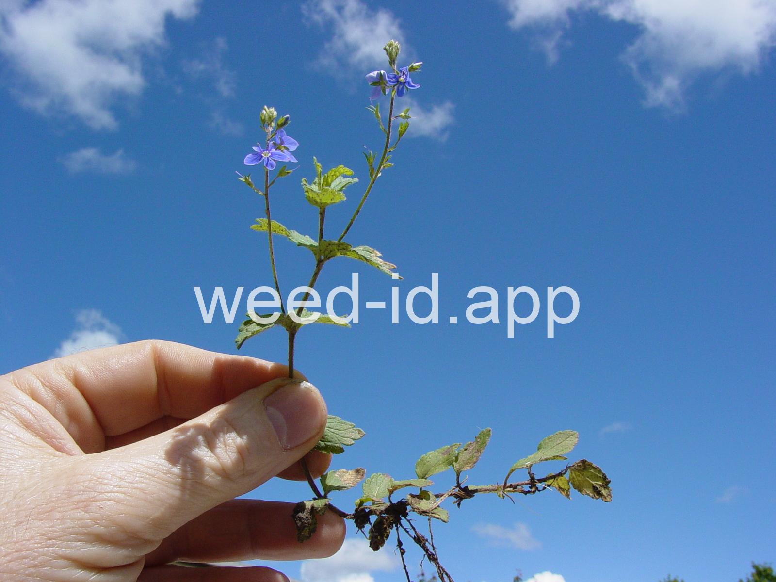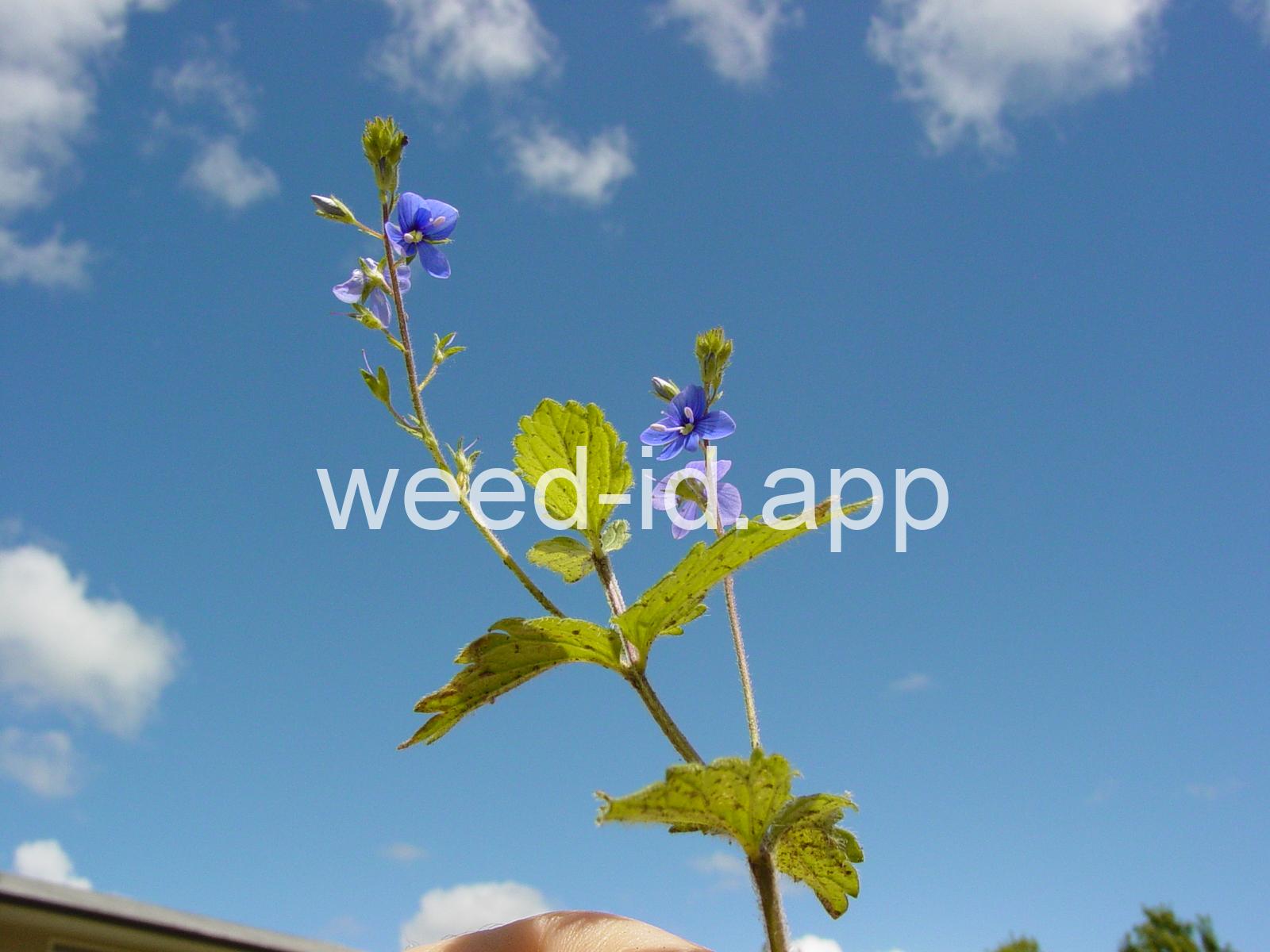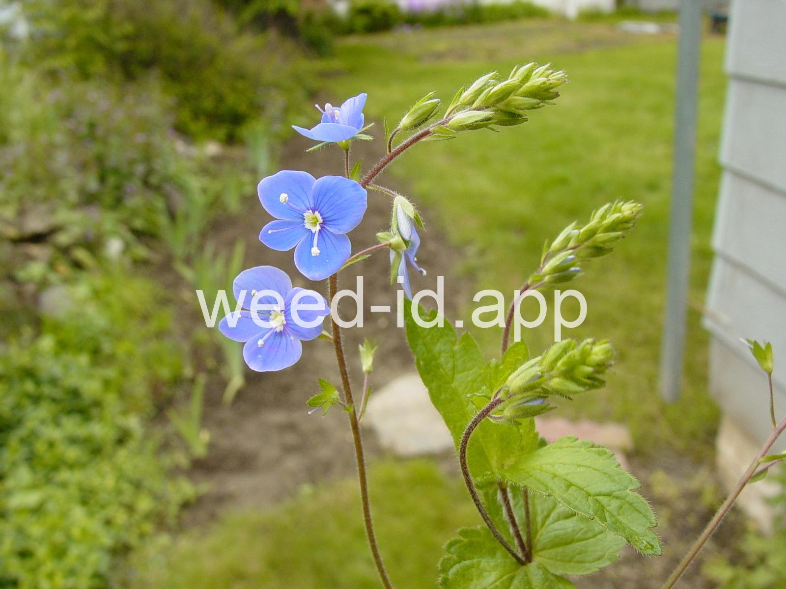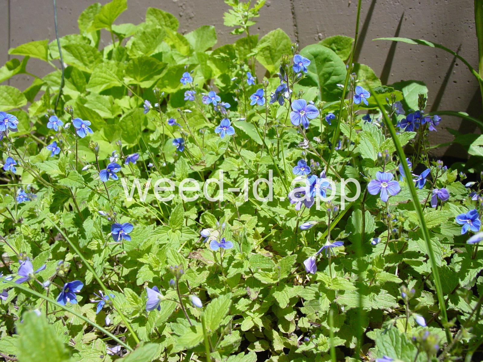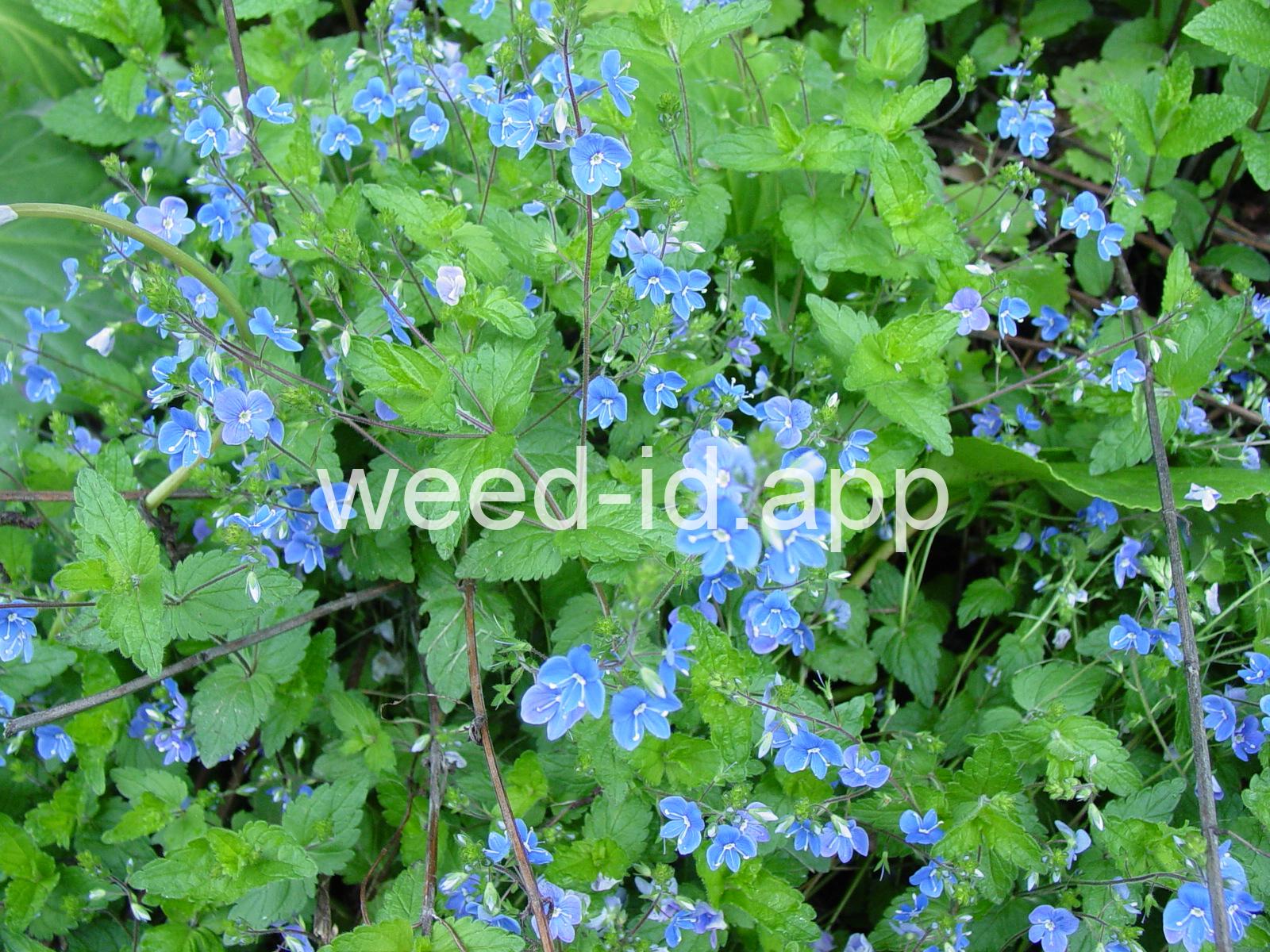 Rhizomatous perennials with somewhat irregular, blue flowers in axillary racemes and opposite, toothed leaves. The flowers showy enough that the species is sometimes sold as an ornamental (but often ends up in the lawn).