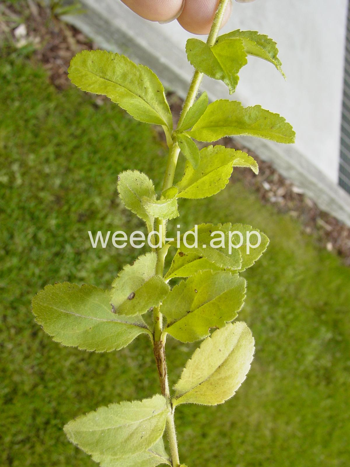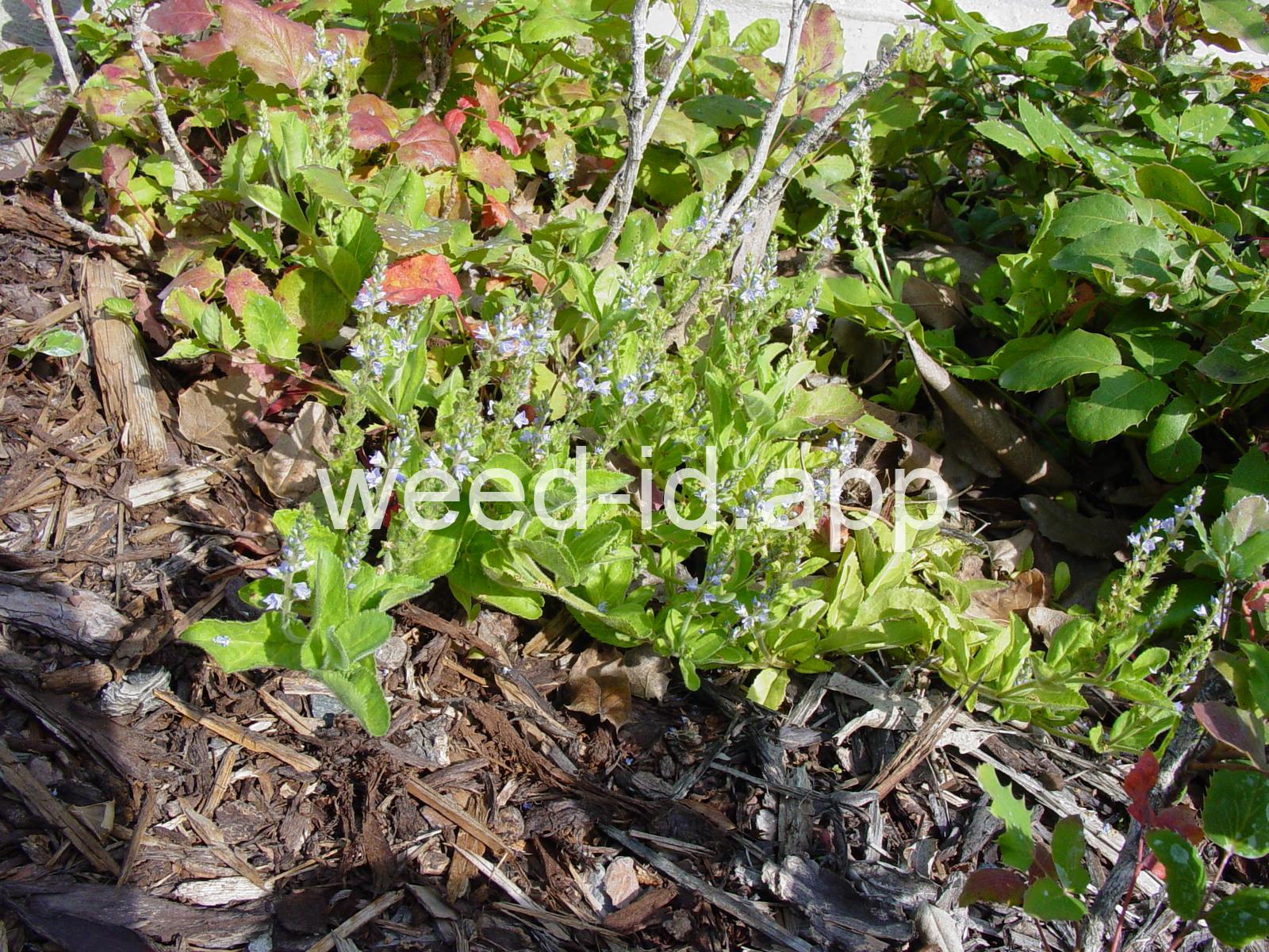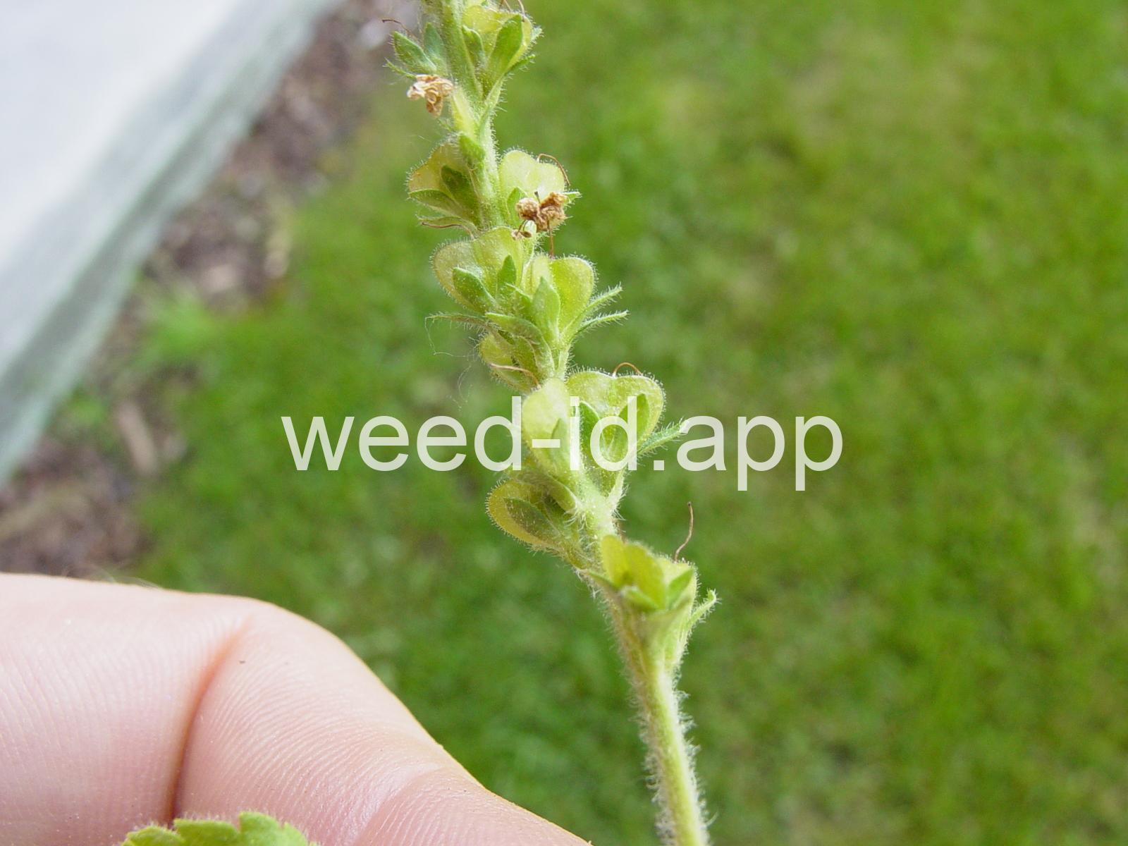 A prostrate perennial with opposite leaves and elongate axillary spikes. Often weedy in flowerbeds and waste areas but seldom in lawns.