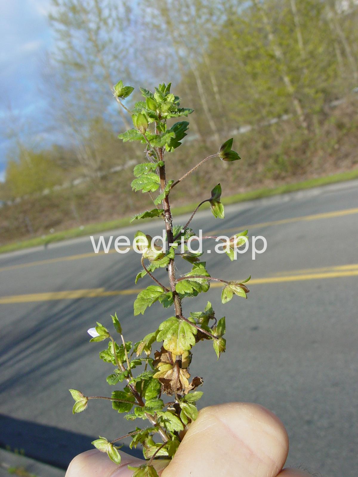 An annual weed of cultivated lands, this species has rounded, opposite leaves and small, heart-shaped fruits. The flowers are irregular with 2 stamens and are bluish to white with dark veins.