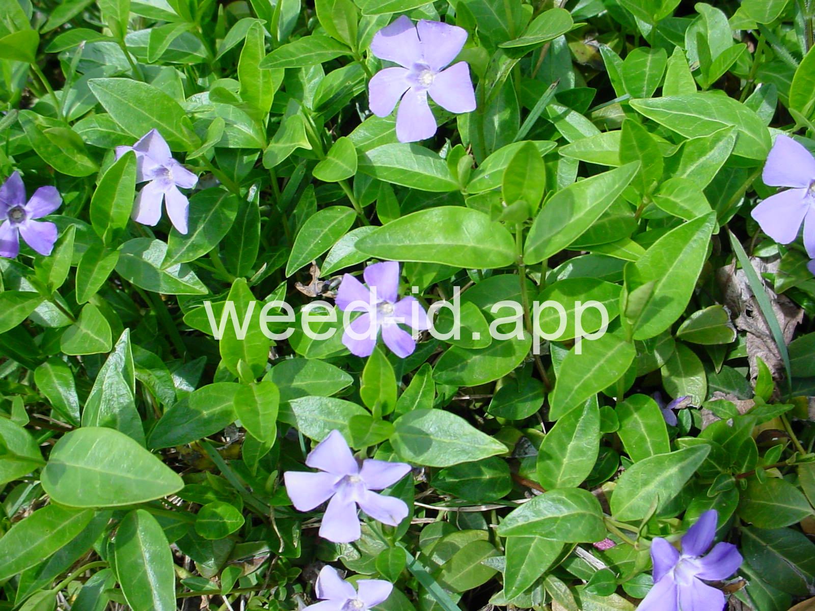 Similar to big periwinkle but with smaller flowers and narrower leaves. Ornamental evergreen groundcover often escaping and persisting.